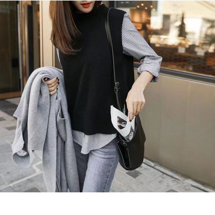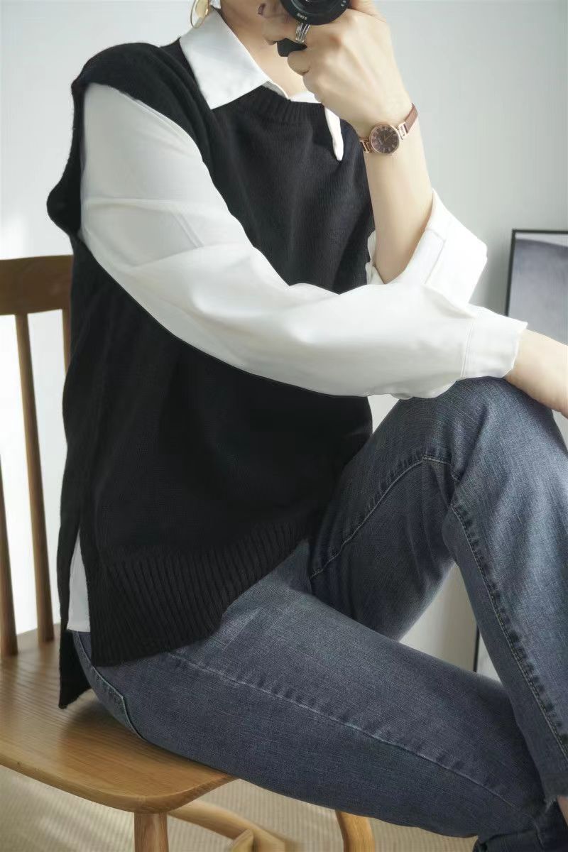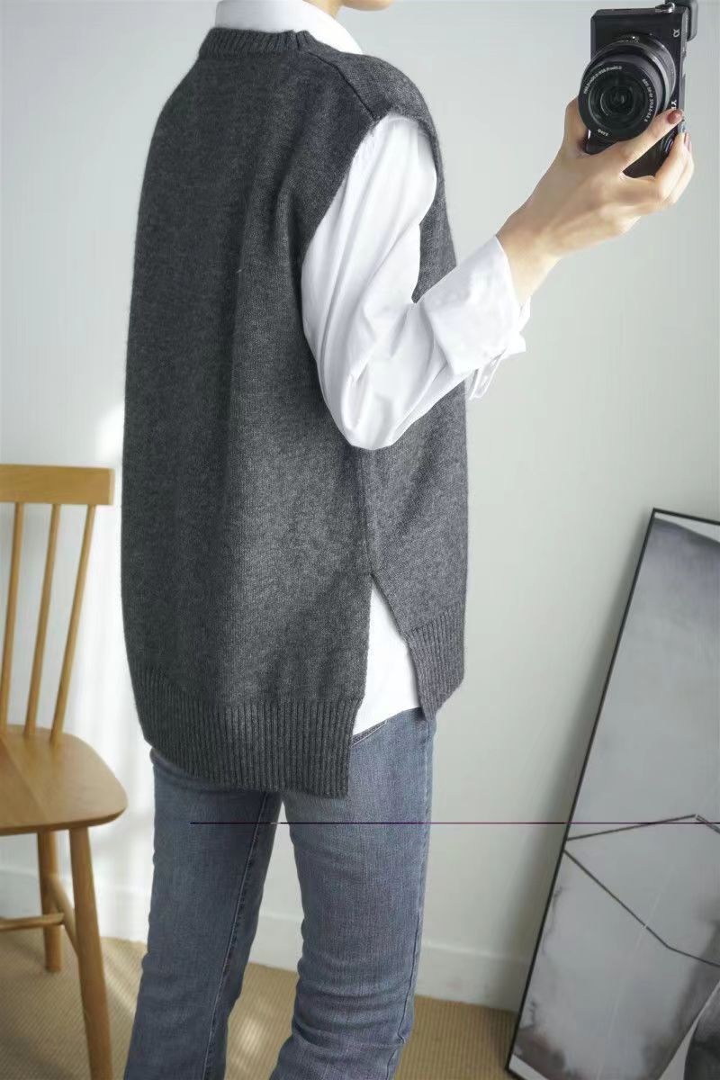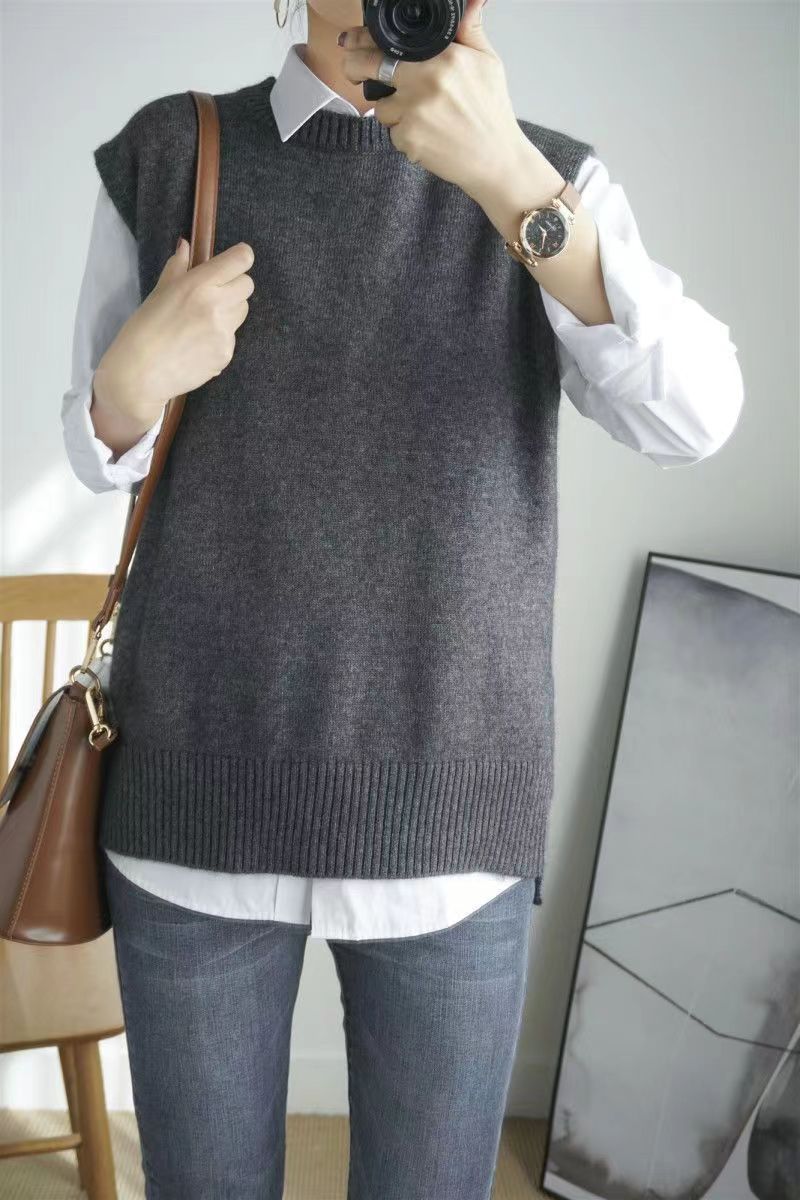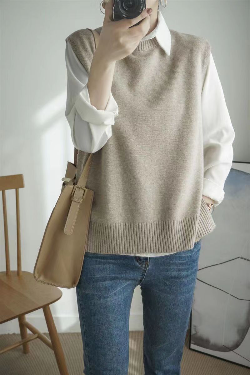 크루 넥 양모 니트 조끼 여성 봄 · 가을 새 풀오버 캐시미어 민소매 한국 루즈베이스 셔츠 스웨터스토어 가기