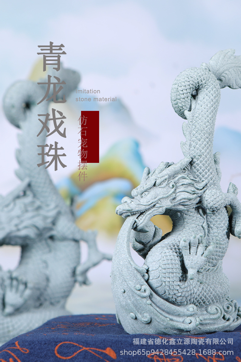 Guochao 녹색 모래 돌 녹색 드래곤 볼 장식품 물고기 탱크 풍경 창의력 데스크탑 분재 홈 거실 장식