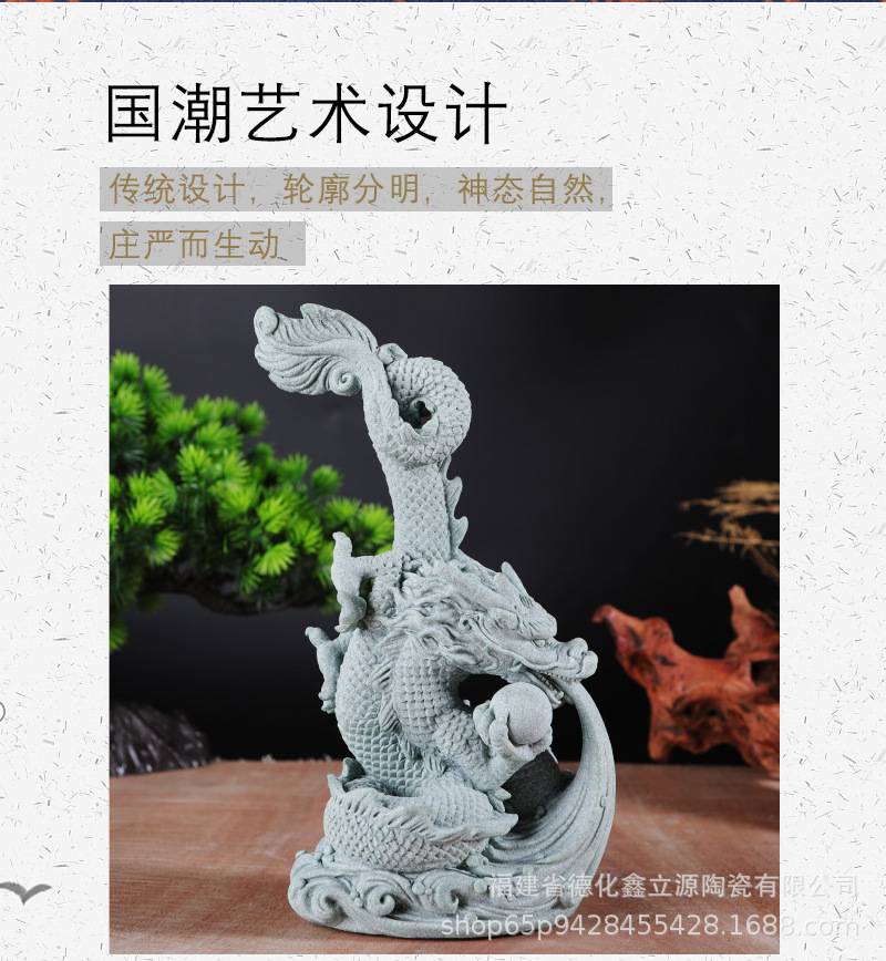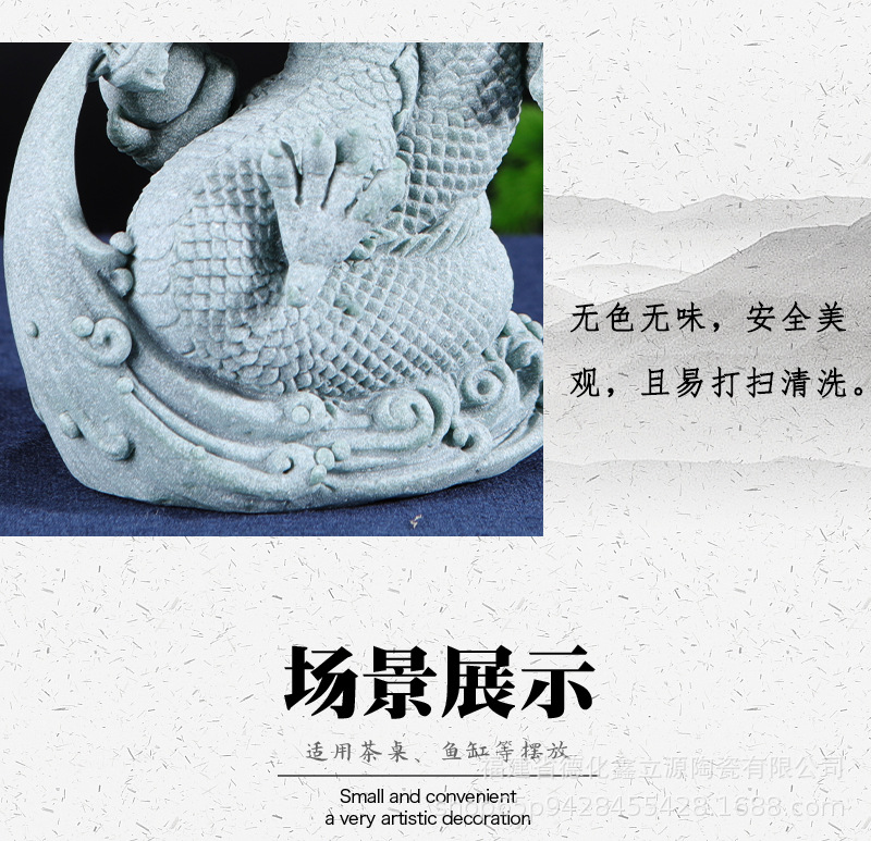 Guochao 녹색 모래 돌 녹색 드래곤 볼 장식품 물고기 탱크 풍경 창의력 데스크탑 분재 홈 거실 장식스토어 가기