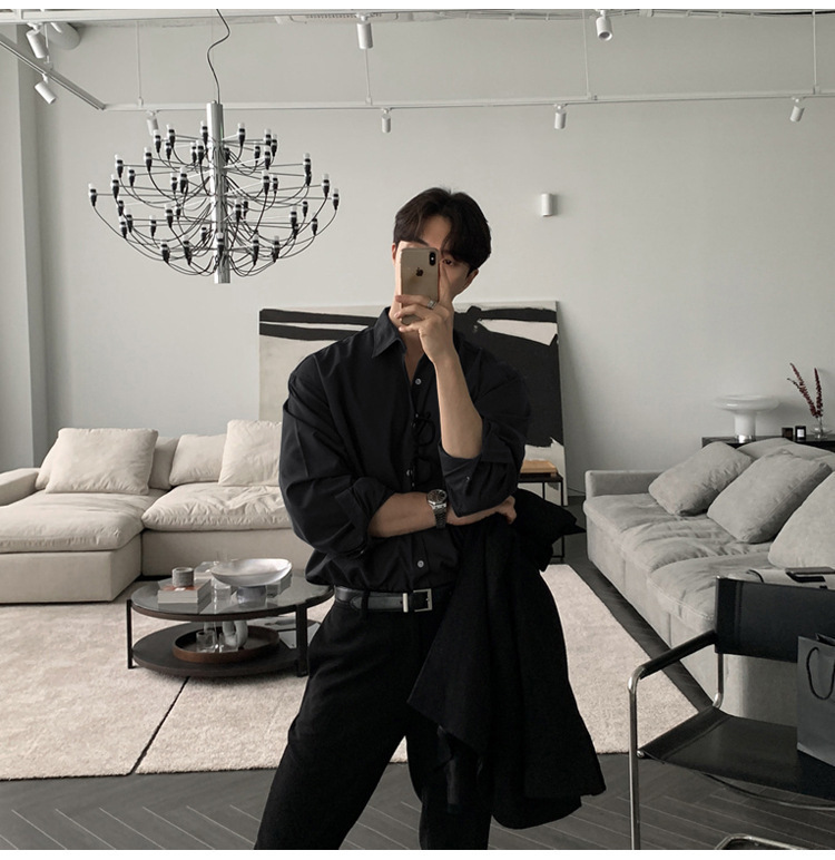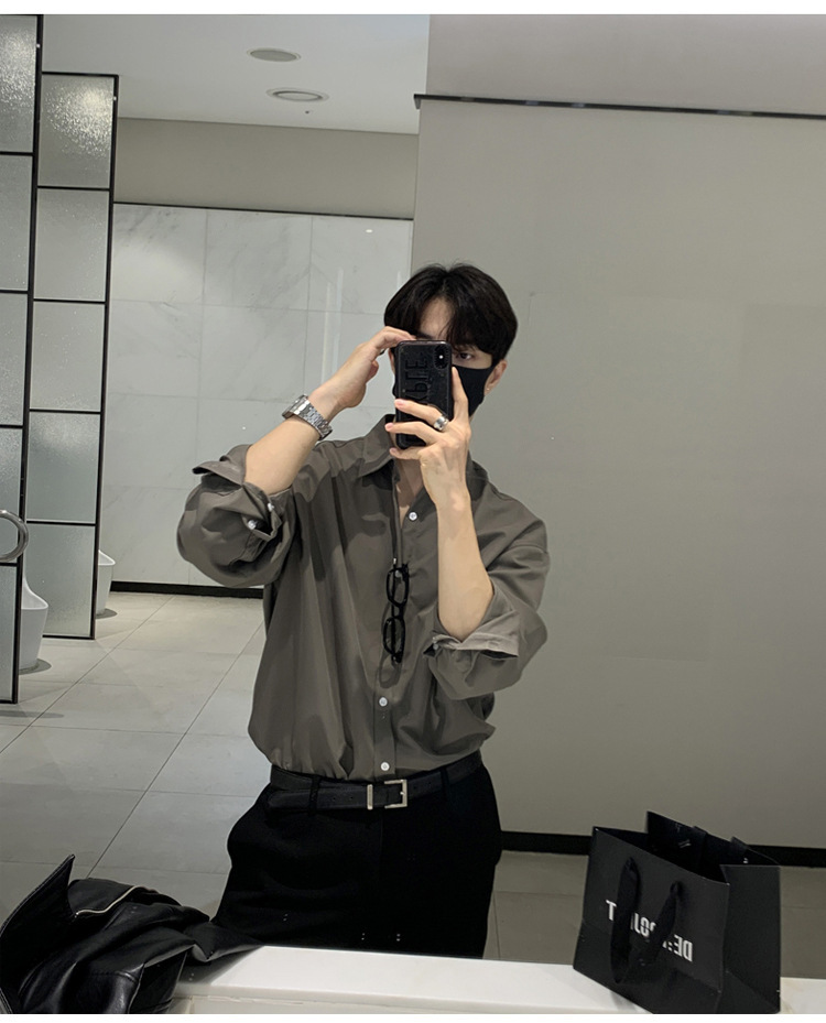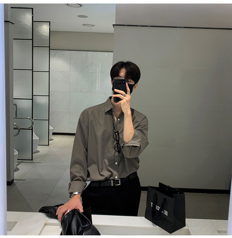 영국 Yupi 남성 셔츠 남성용 긴팔 회색 빛 성숙한 세트 내부 셔츠 특대 조수