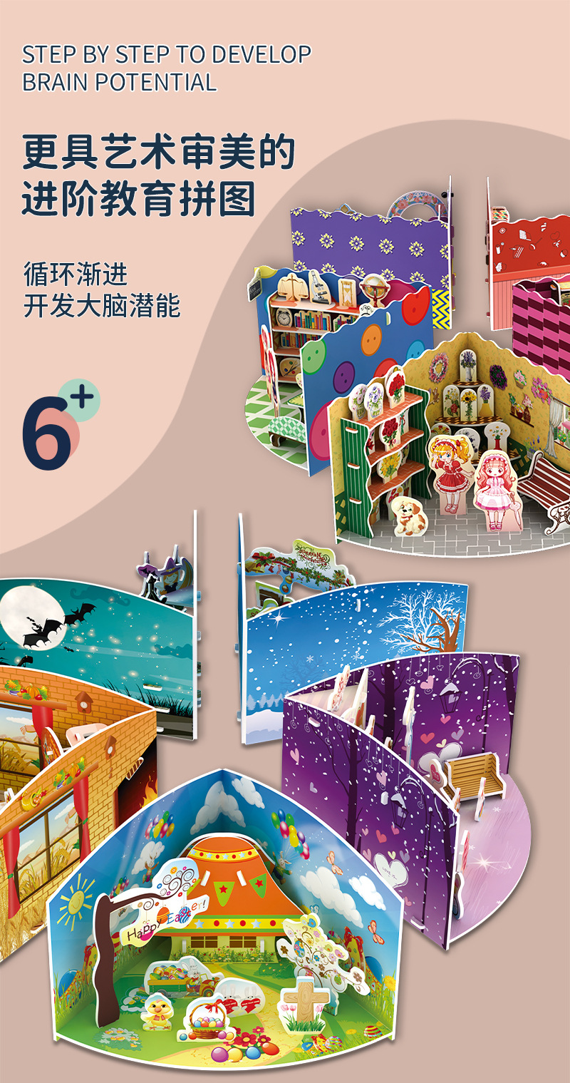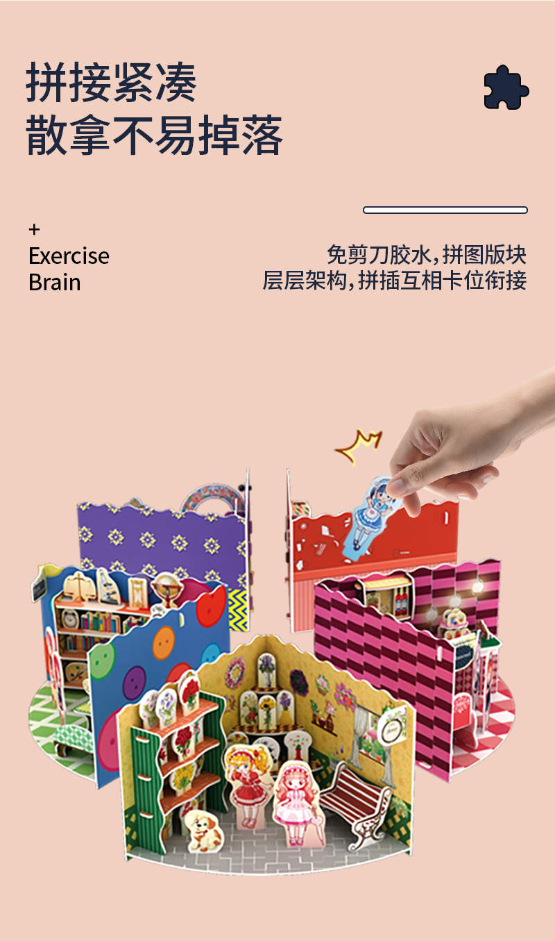 3 차원 퍼즐 3D 회전 코티지 모델 퍼즐 조립 장식 종이 집 어린이 소녀 국경 놀이 집 장난감스토어 가기