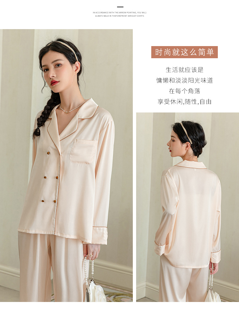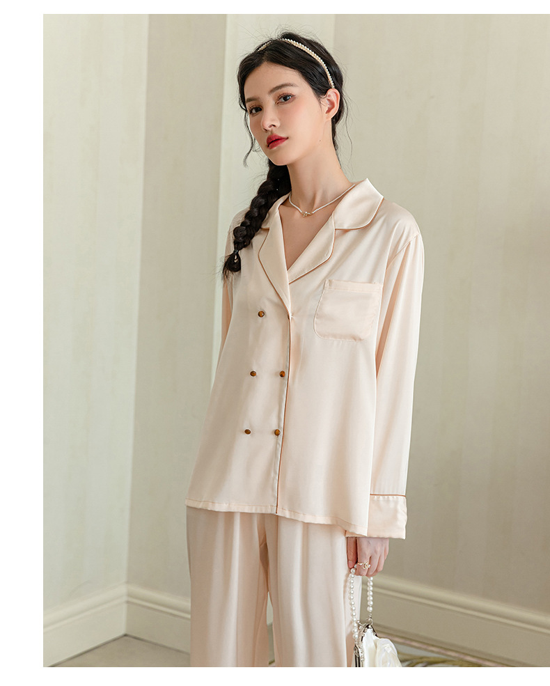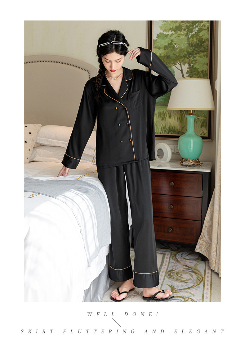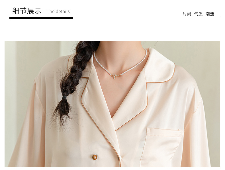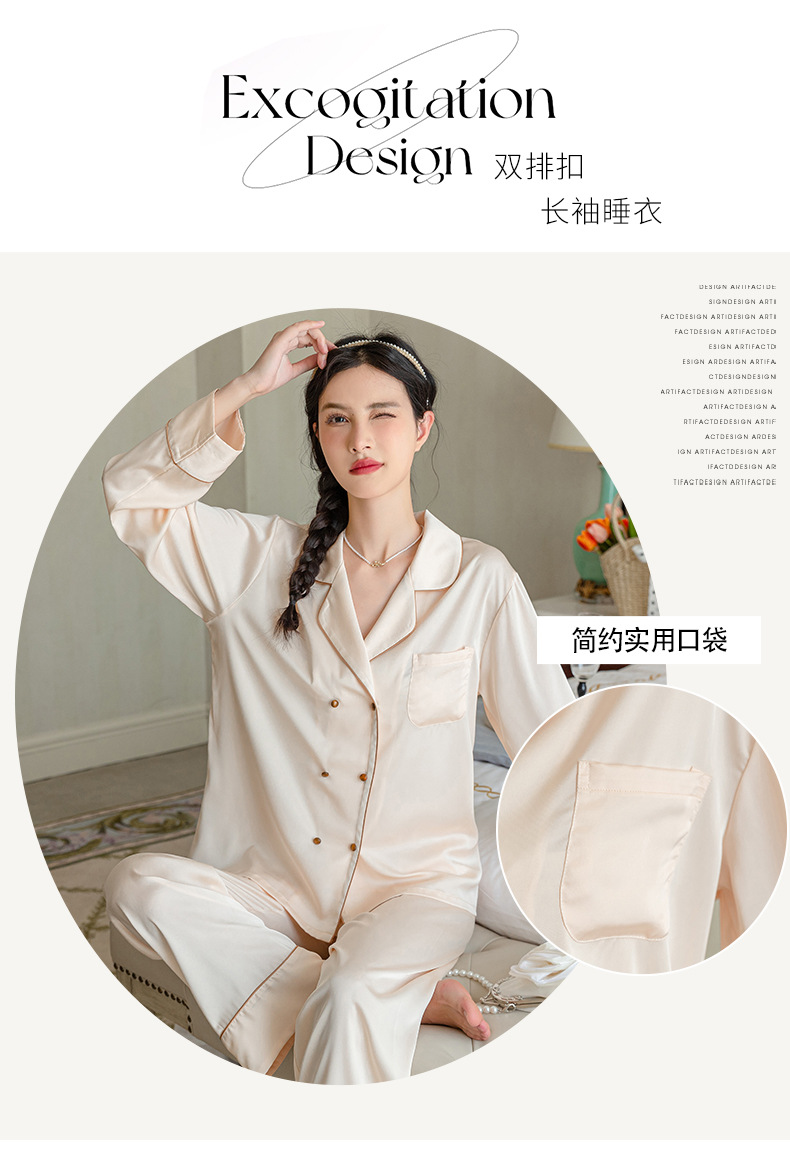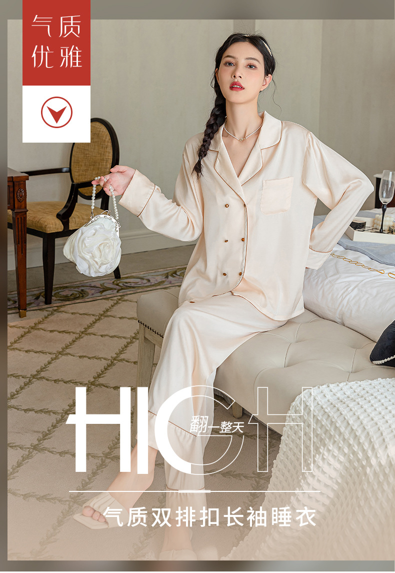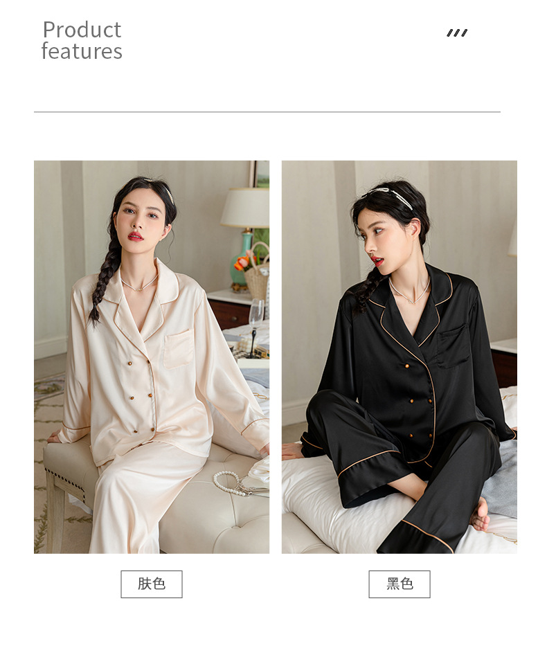 더블 브레스트 얇은 아이스 실크 새로운 중국 스타일 국가 스타일 파자마 여성 봄과 가을 긴 소매 대나무 잎 자카드 실크 홈 웨어 여름