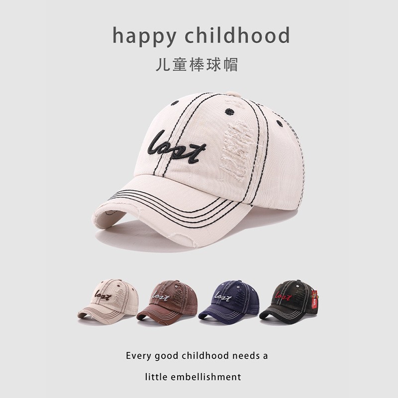 어린이 모자 봄 새 편지 자수 씻은 야구 모자 남성과 여성 아기 패션 태양 방지 피크 모자 대외 무역스토어 가기