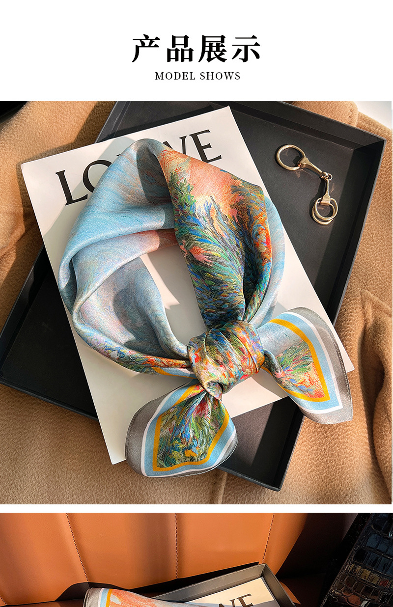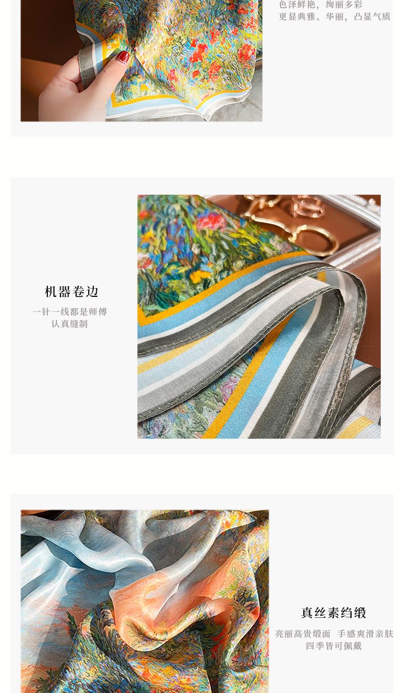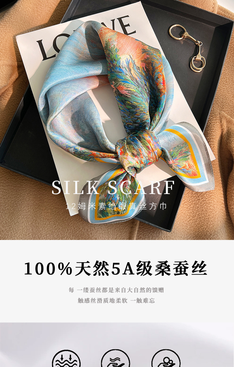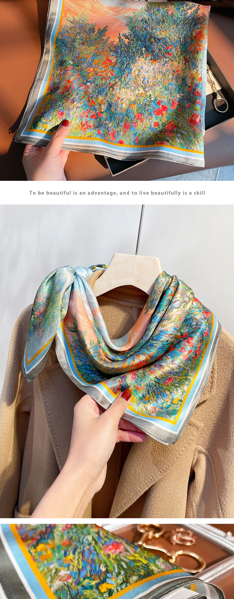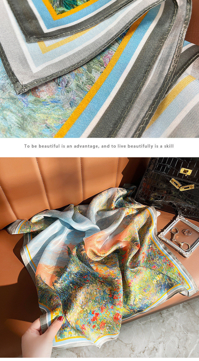 봄 새로운 크레이프 새틴 유화 인쇄 실크 스카프 여성의 다용도 높은 감각 100% 뽕나무 실크 스카프 선물스토어 가기