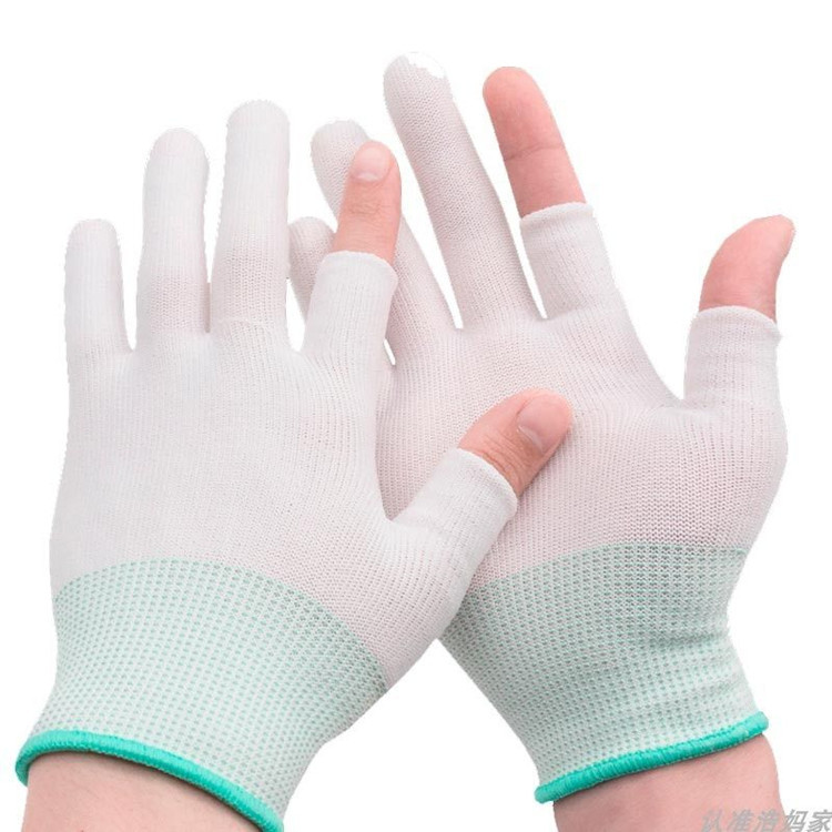 장갑 부러진 세 손가락 누출 손가락 고집 손 통기성 차 따기 포장 터치 스크린 남성과 여성 탄성 노동 보호 얇은 나일론 장갑