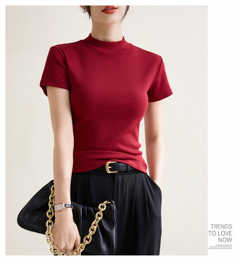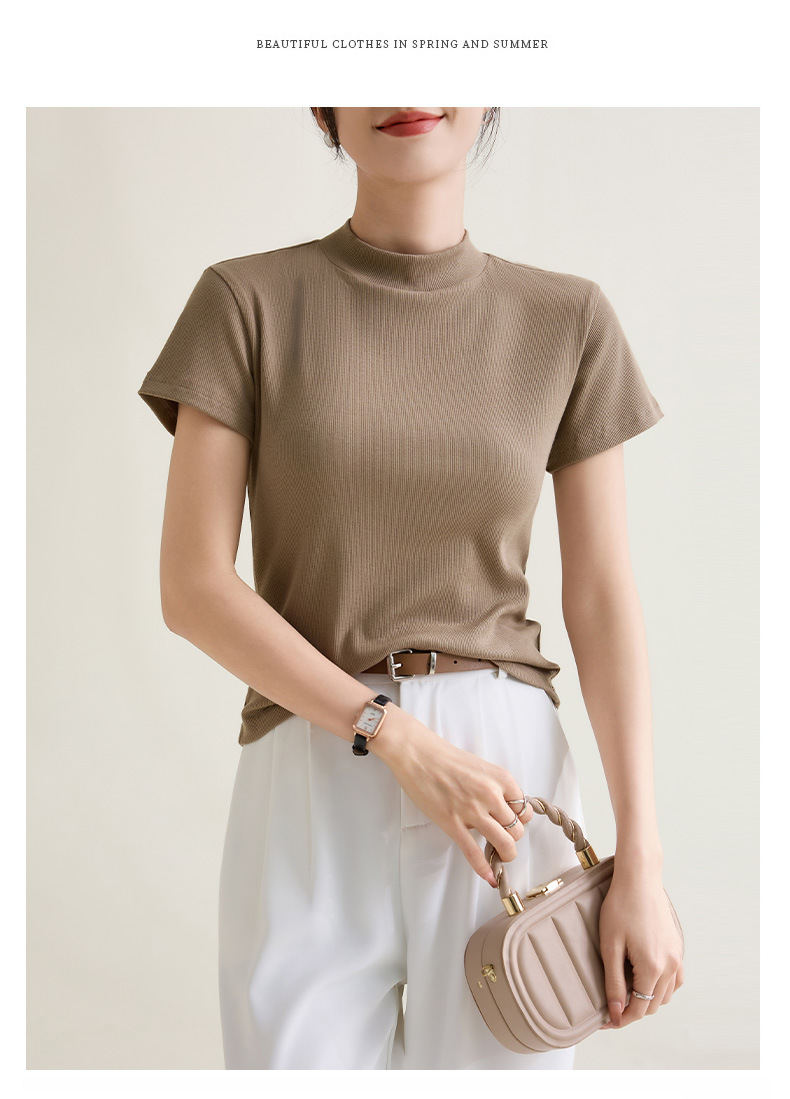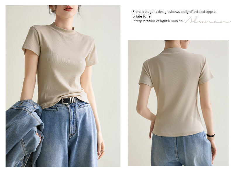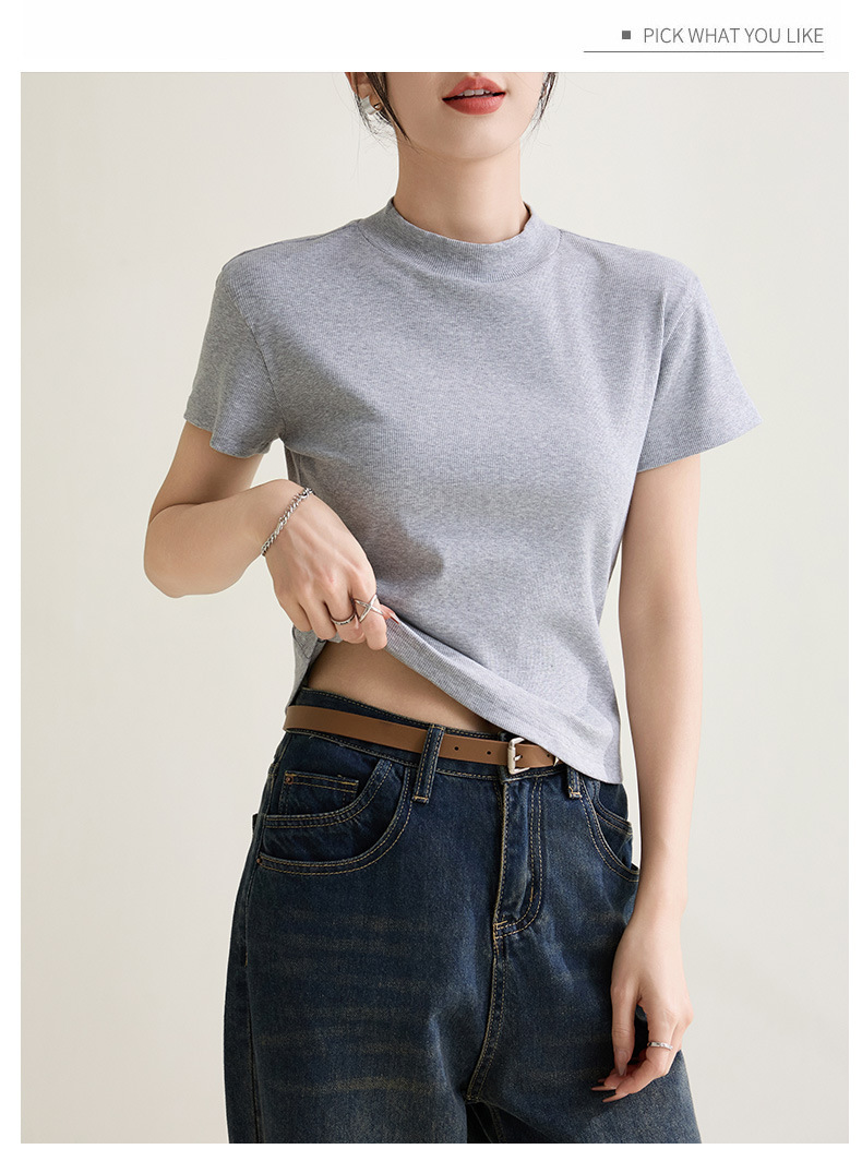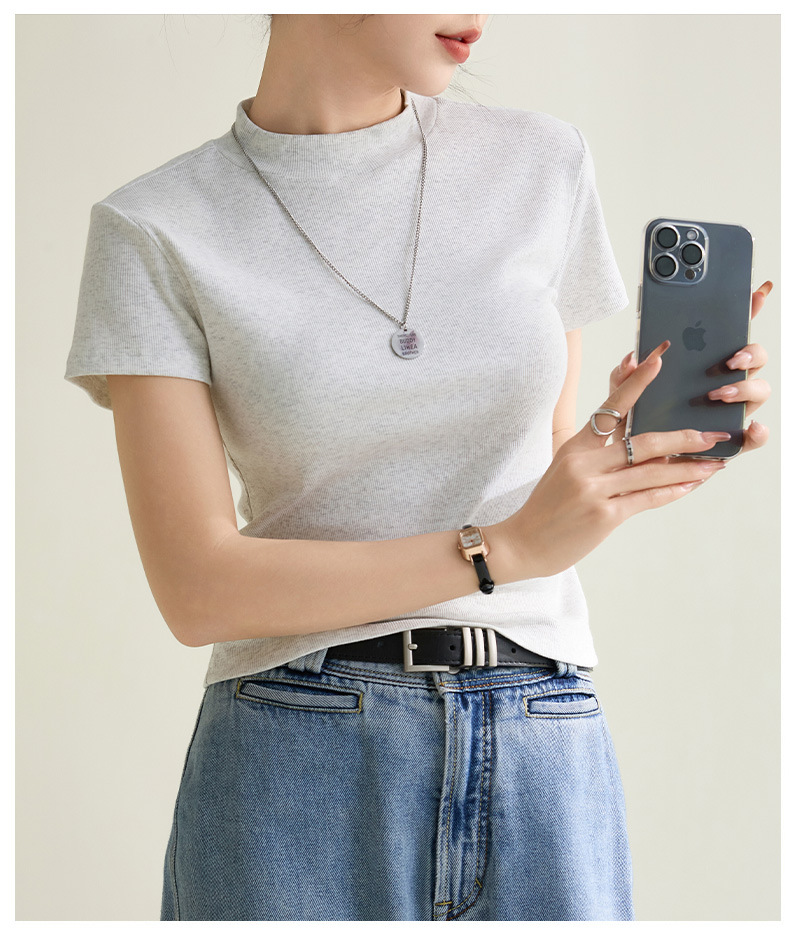시원한 느낌의 슬림핏 솔리드 컬러 라운드넥 반팔 티셔츠 여성용 2026 봄 여름 신상 고탄력 이너웨어 상의스토어 가기