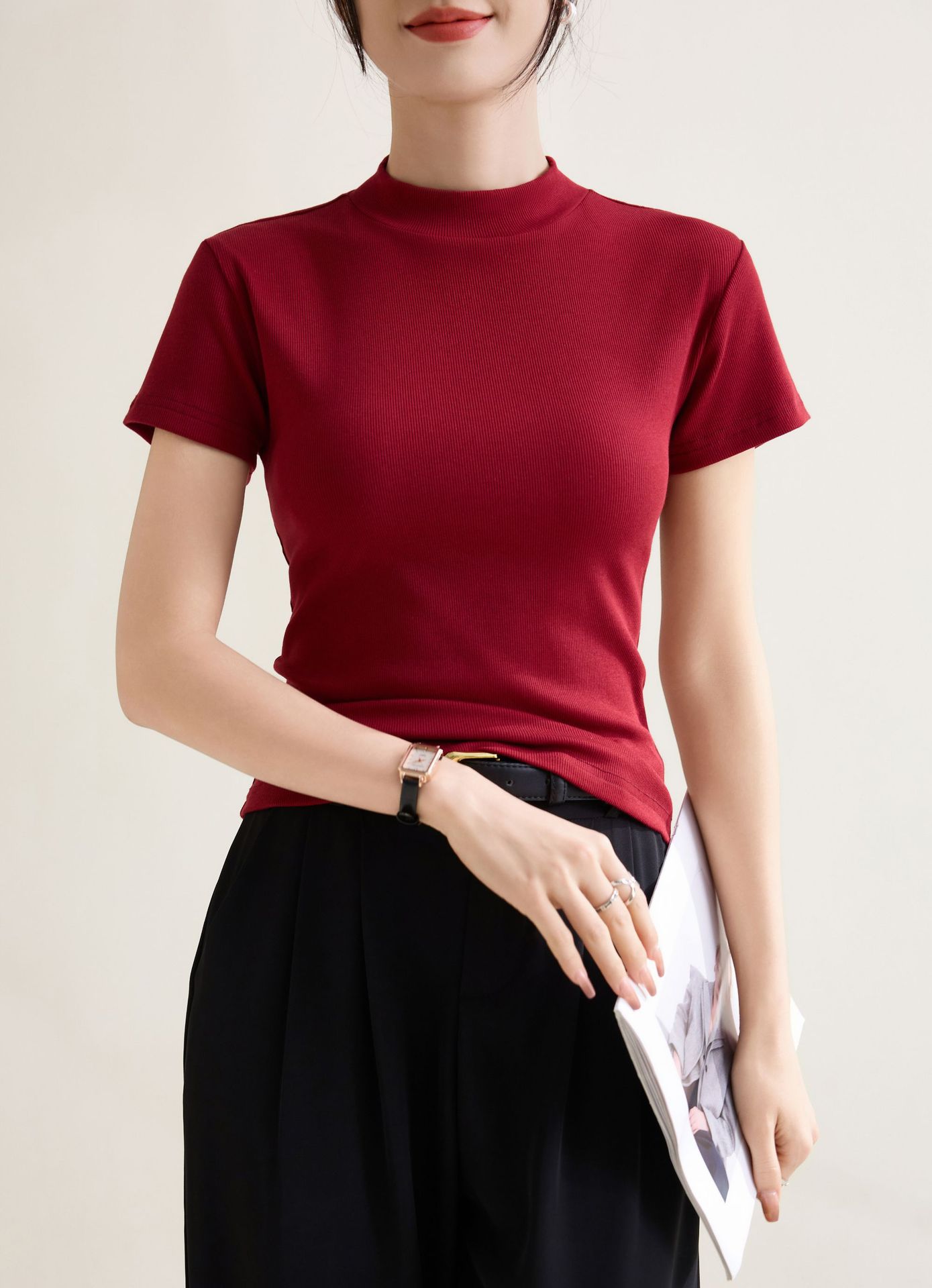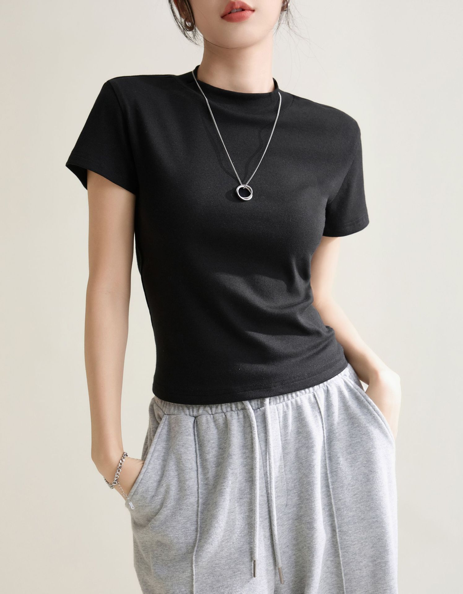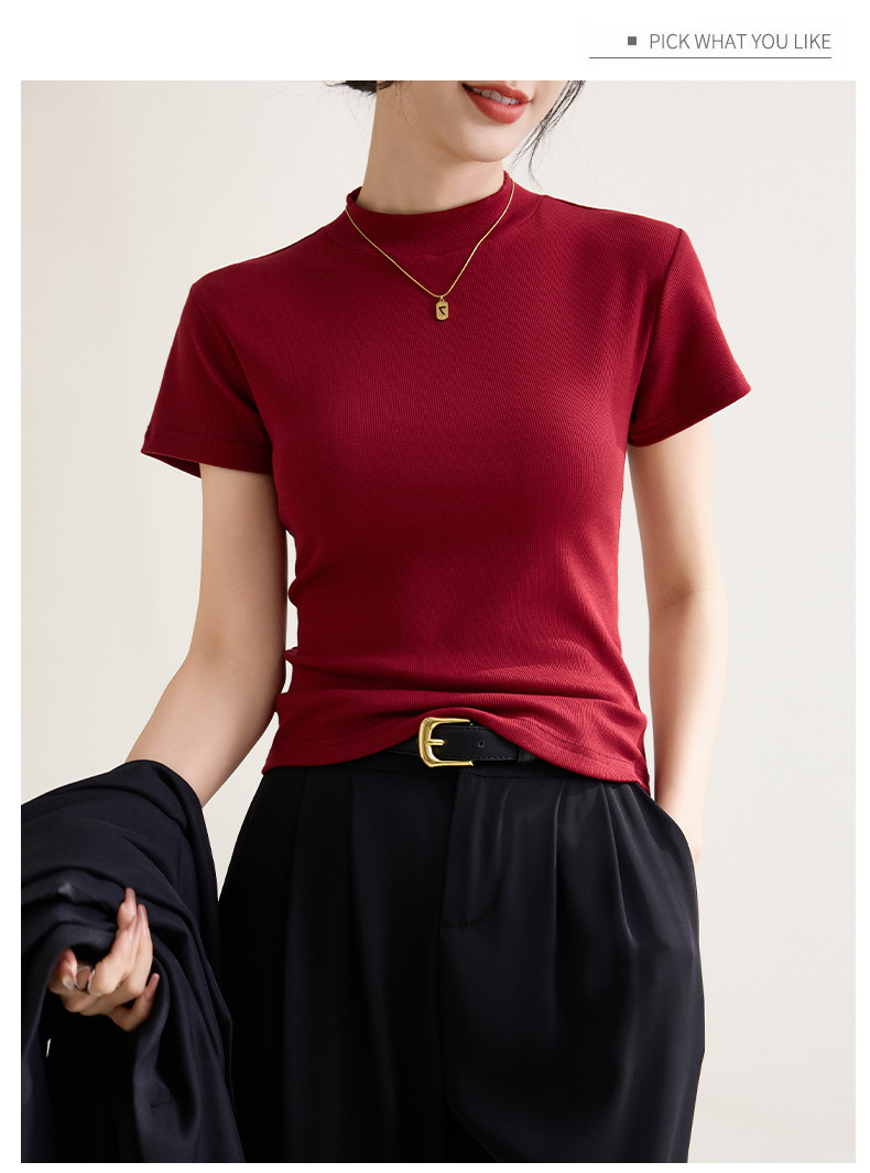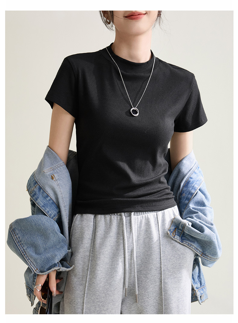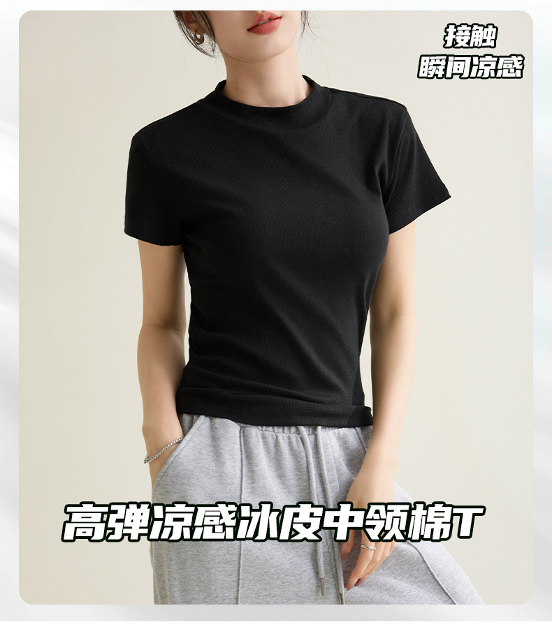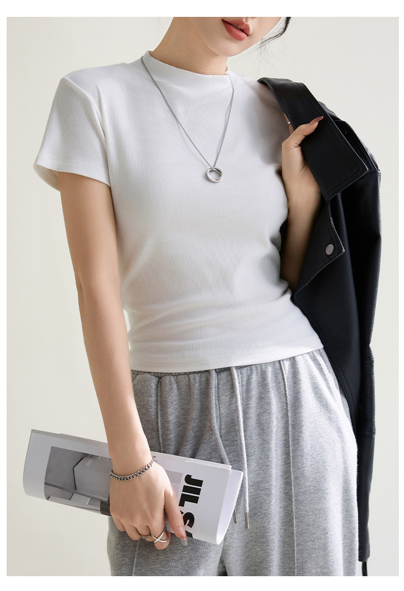 시원한 느낌의 슬림핏 솔리드 컬러 라운드넥 반팔 티셔츠 여성용 2026 봄 여름 신상 고탄력 이너웨어 상의