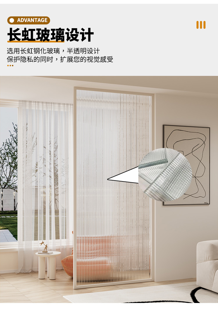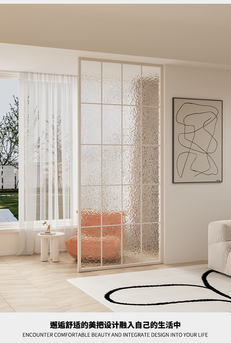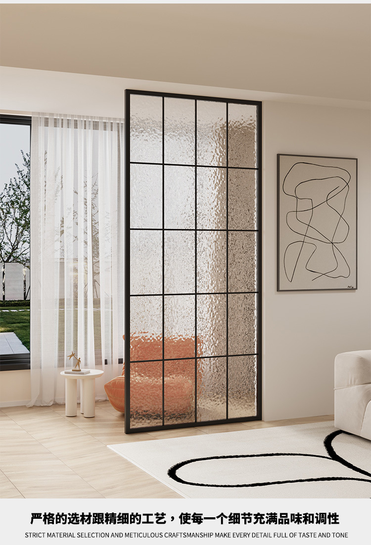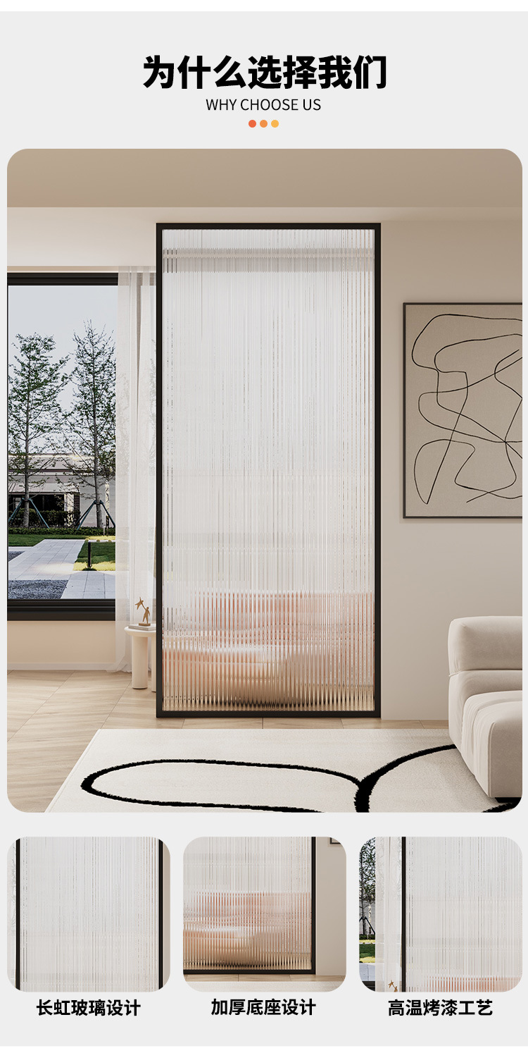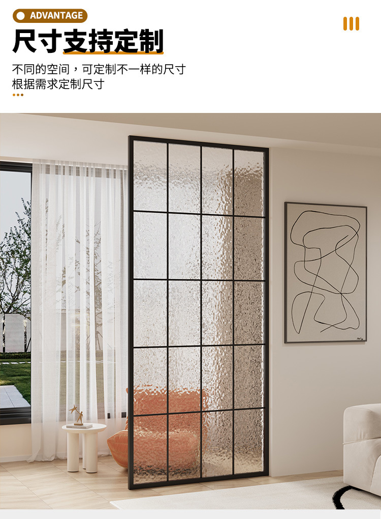 法式奶油风轻奢入户进门不锈钢铁艺长虹玻璃屏风隔断客厅玄关创意