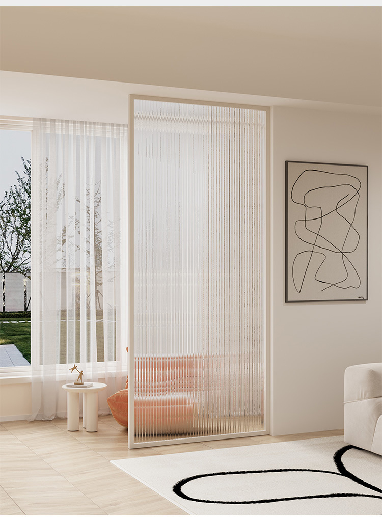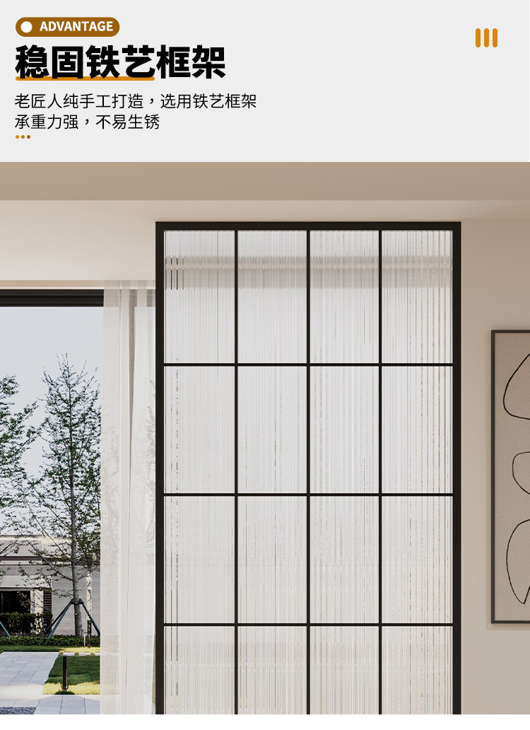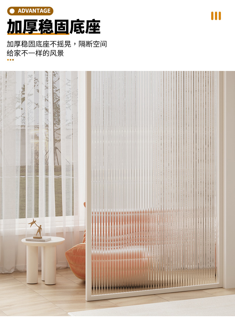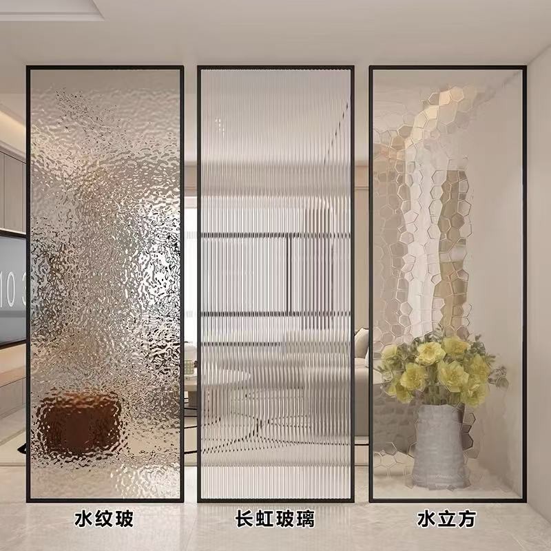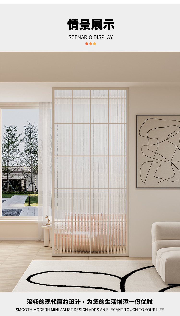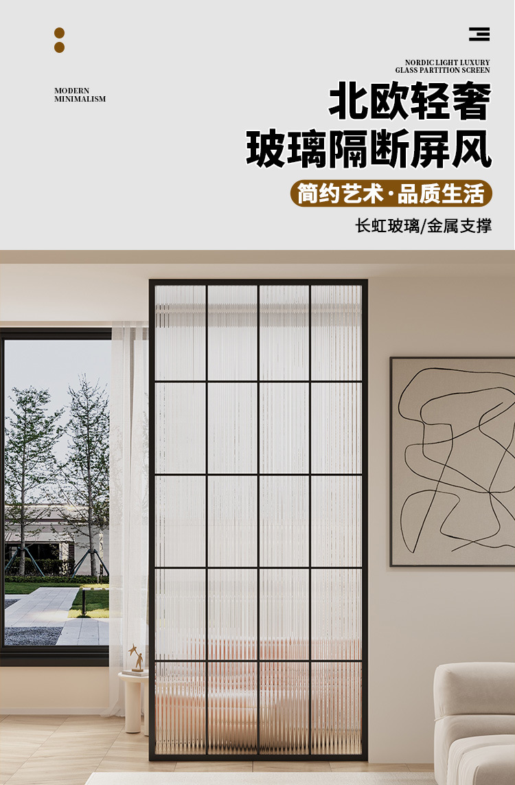 法式奶油风轻奢入户进门不锈钢铁艺长虹玻璃屏风隔断客厅玄关创意