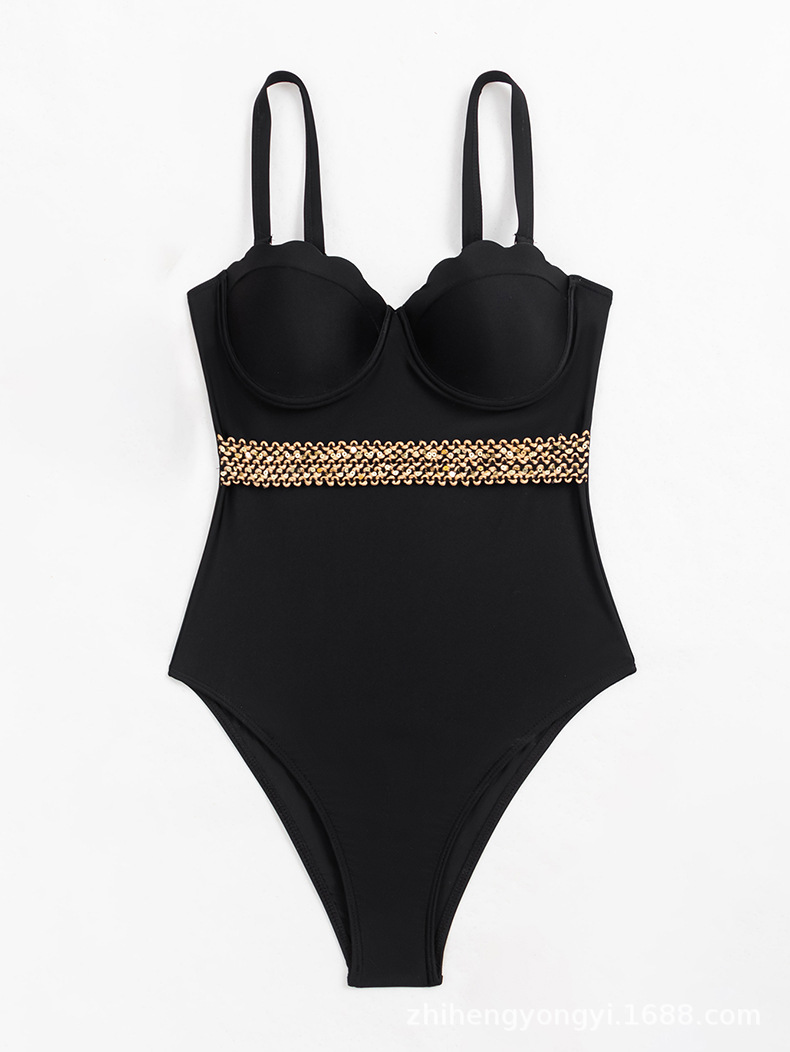 2024 새로운 아마존 국경 수영복 여성 섹시한 원피스 푸시 업 스트랩 단색 대외 무역 수영복 재고 도매