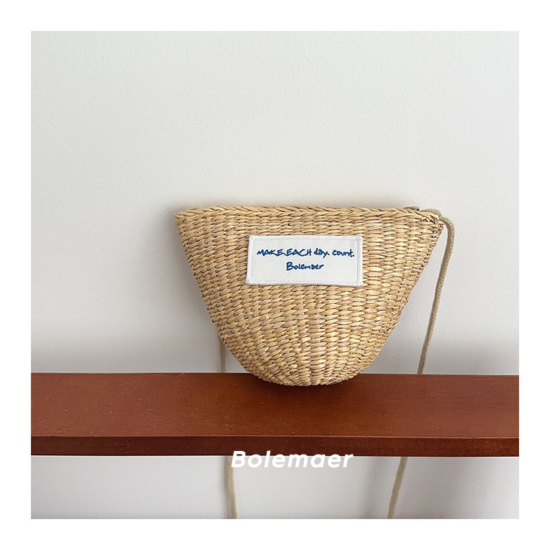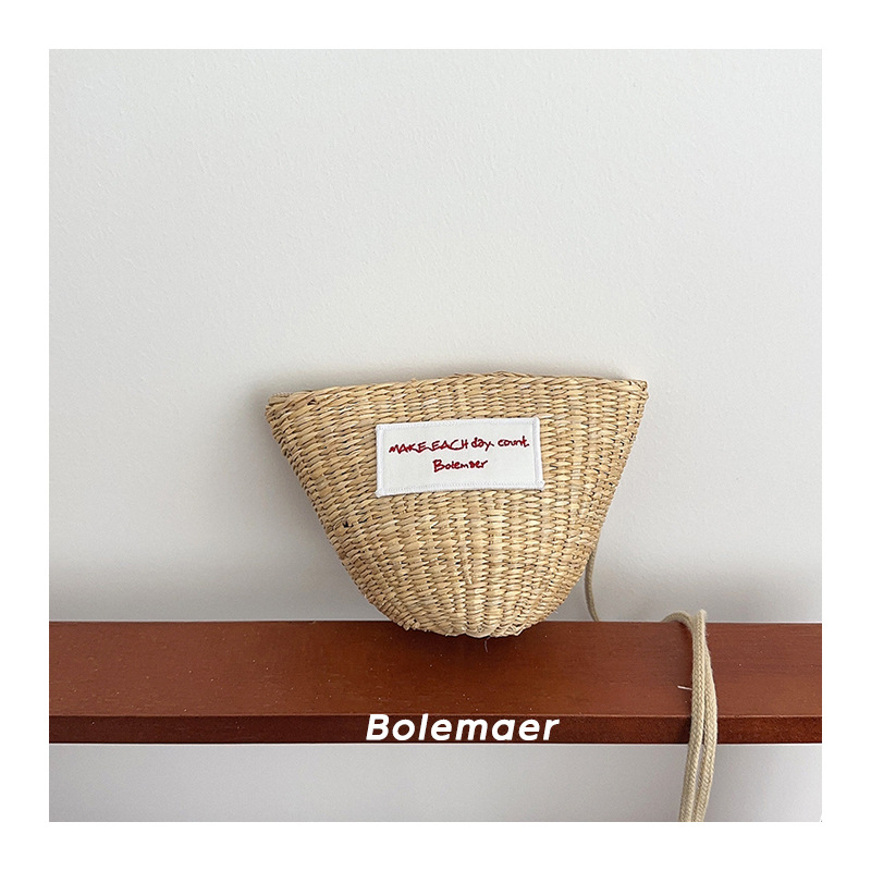 Ins 어린이 밀짚 가방 한국식 올매치 헝겊 라벨 캐주얼 크로스 바디 백 소녀 아기의 여름 귀여운 동전 지갑