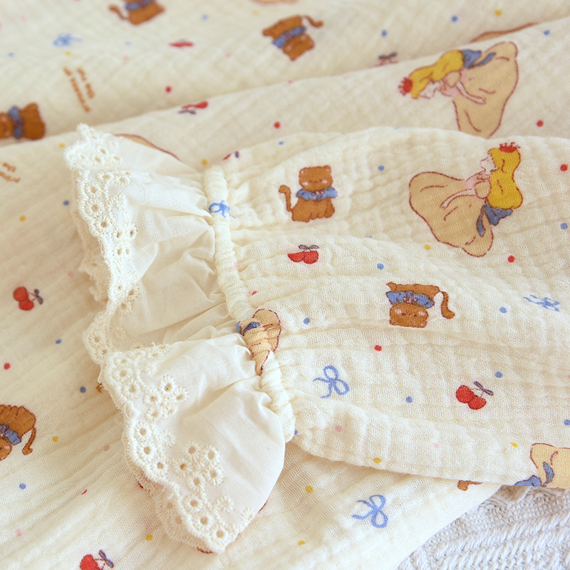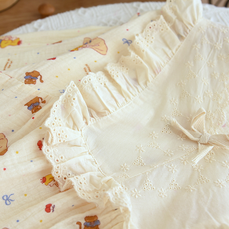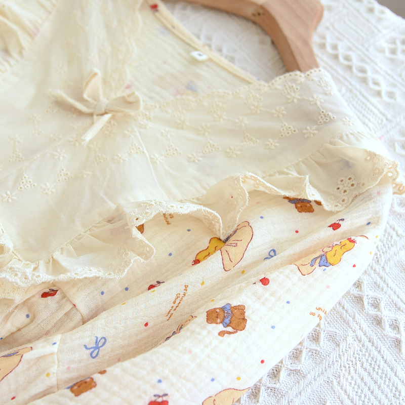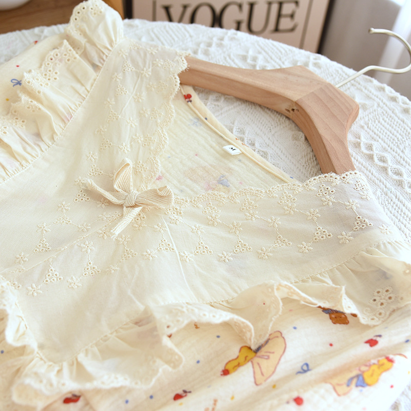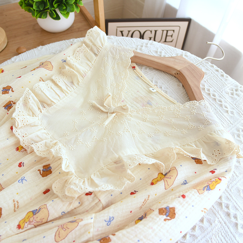 달콤한 레이스 풀오버 나이트 드레스 여성면 더블 레이어 면사 봄과 가을 여름 긴 소매 홈 착용 공장 도매