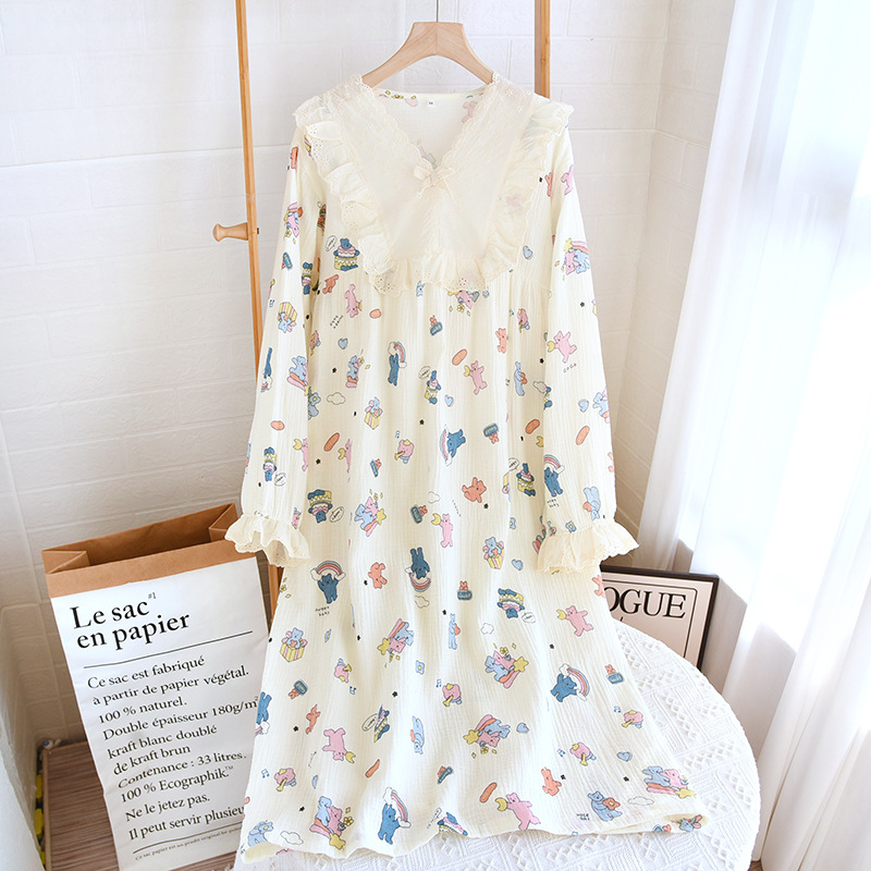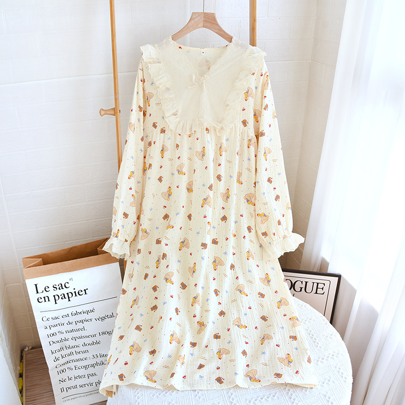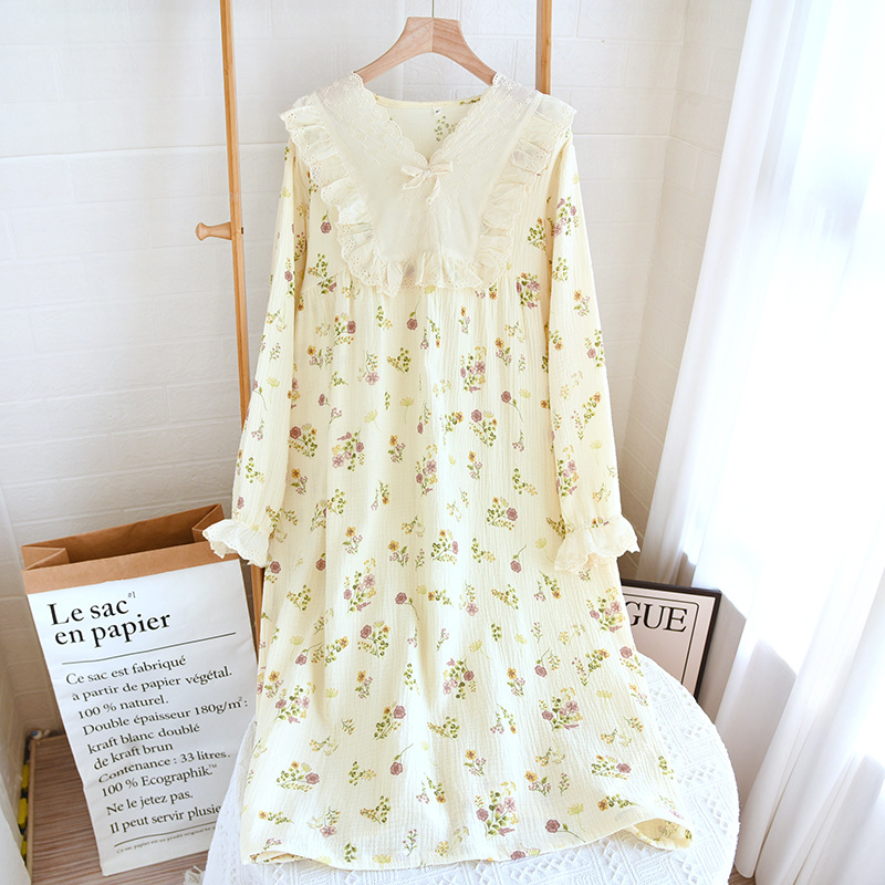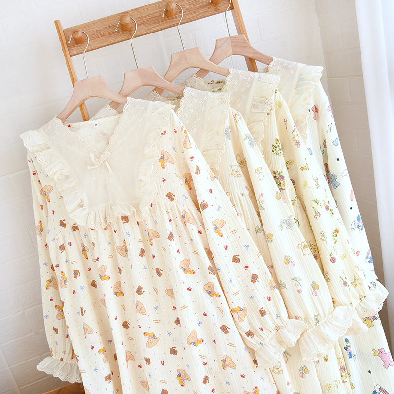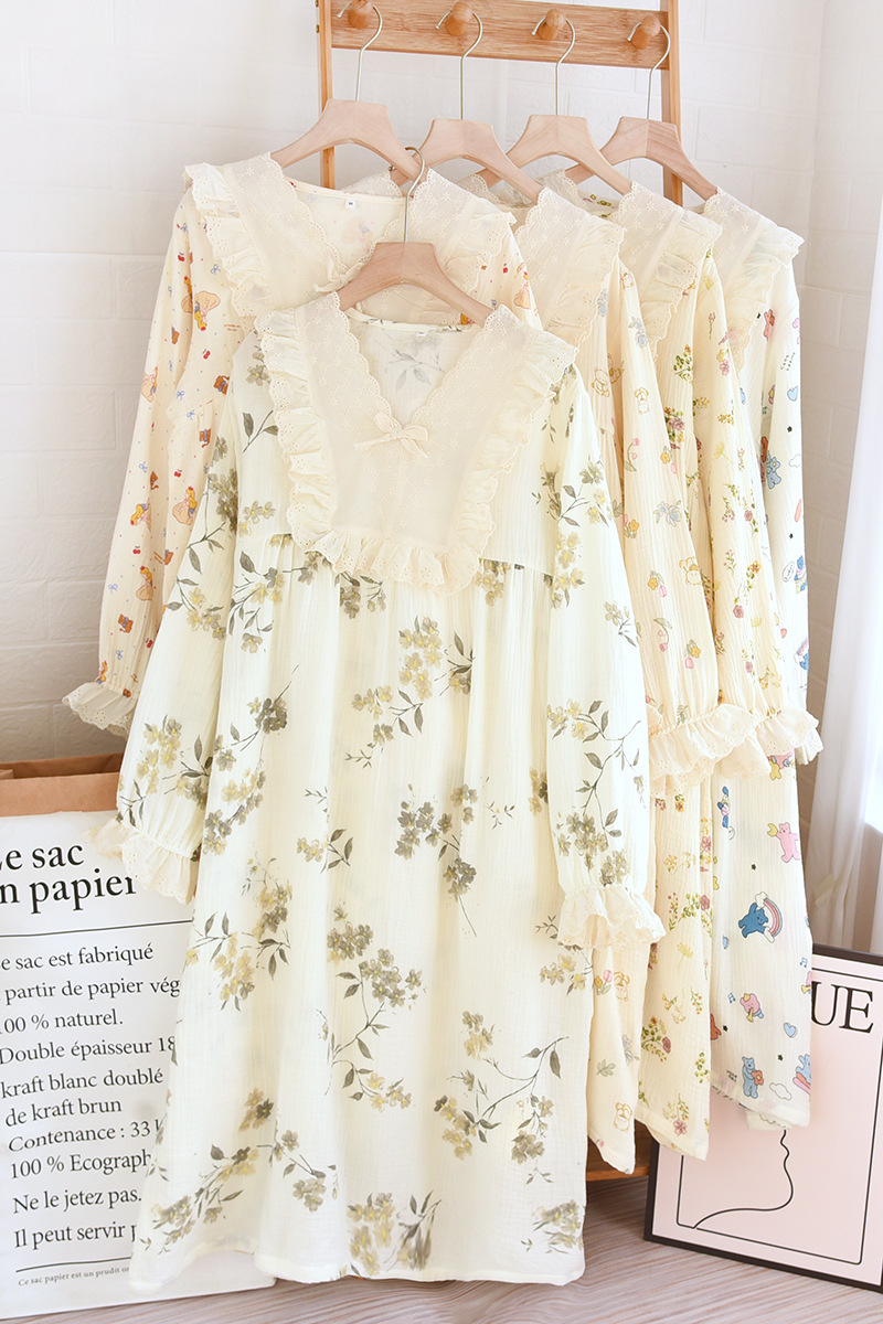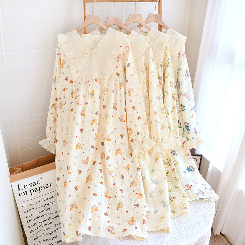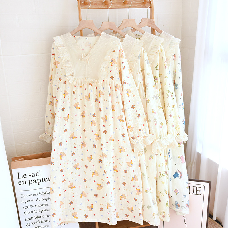 달콤한 레이스 풀오버 나이트 드레스 여성면 더블 레이어 면사 봄과 가을 여름 긴 소매 홈 착용 공장 도매스토어 가기