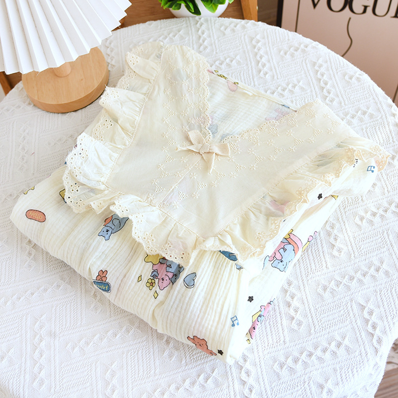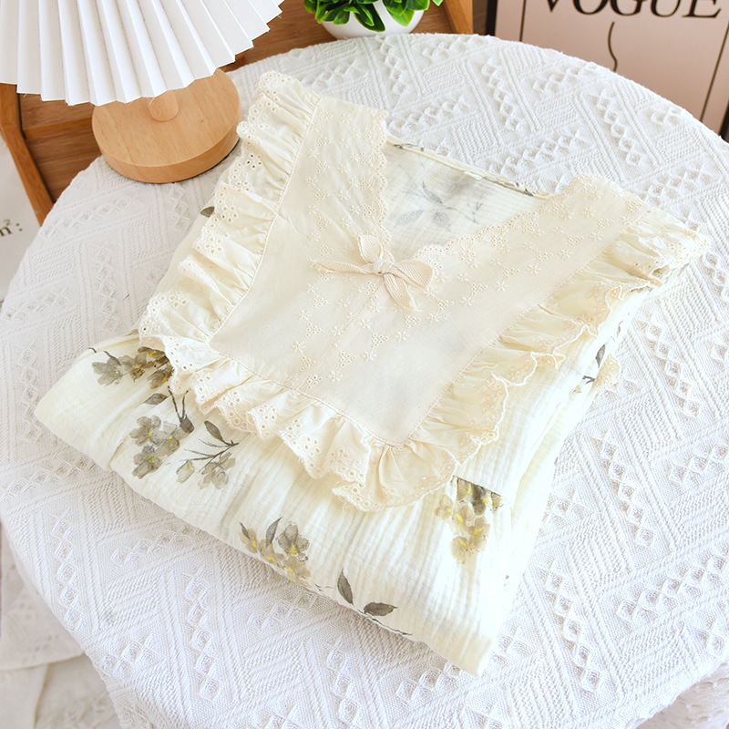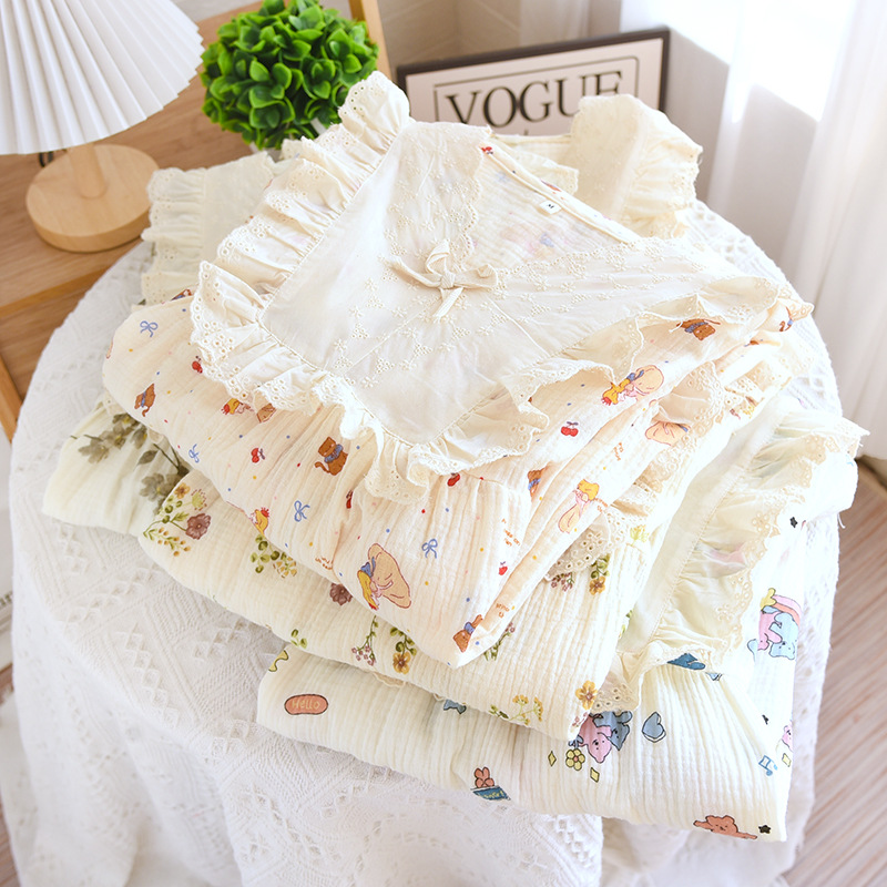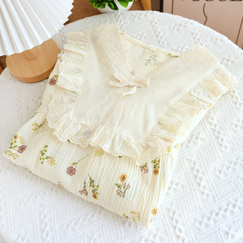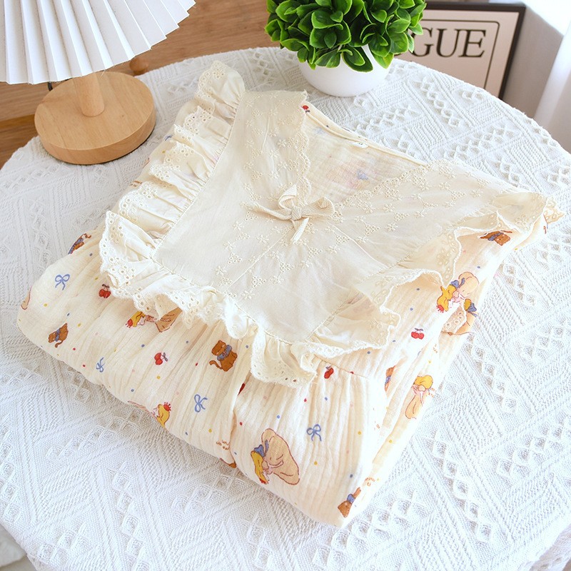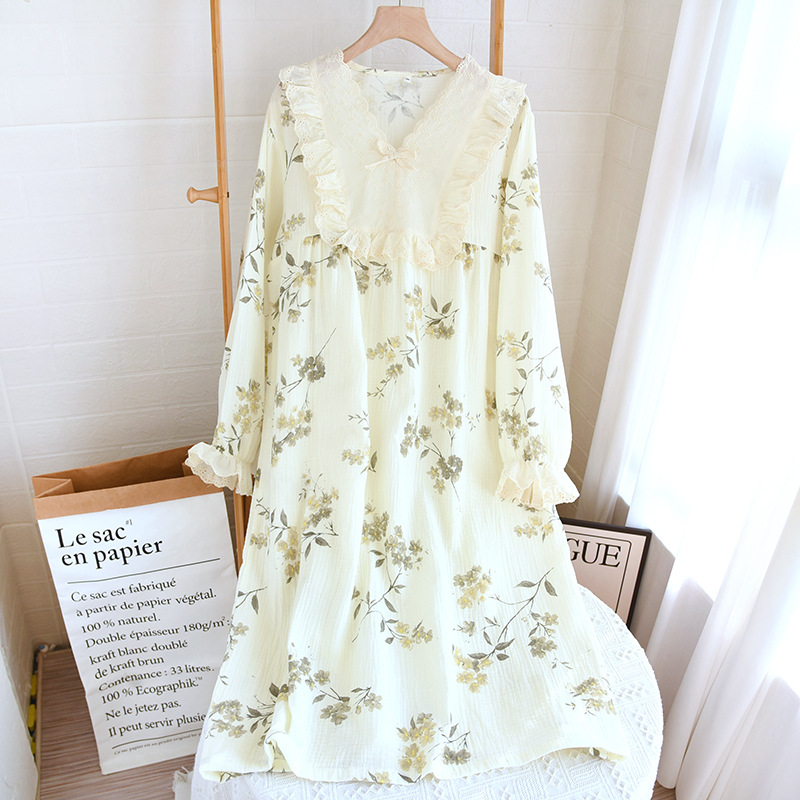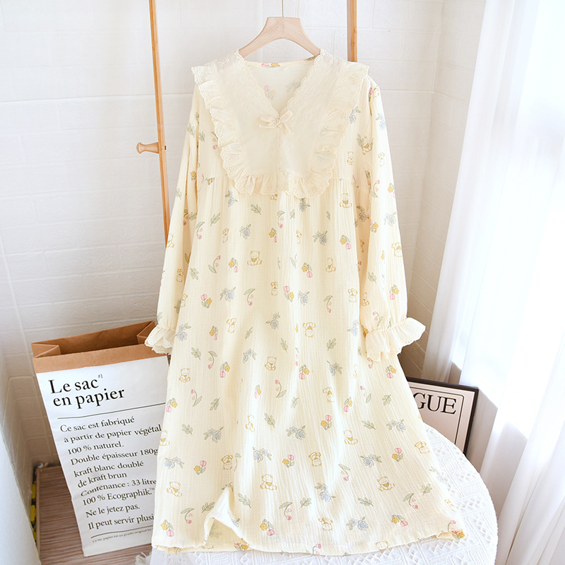 달콤한 레이스 풀오버 나이트 드레스 여성면 더블 레이어 면사 봄과 가을 여름 긴 소매 홈 착용 공장 도매스토어 가기