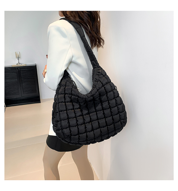 대용량 면 소재 가방, 다중 포켓, 숄더백, 크로스백, 만두백, 주름 클라우드백, 토트백, 여성용 가방, 핸드백, 수납 가방
