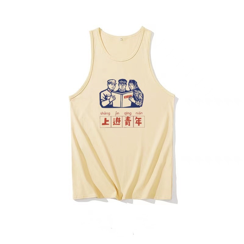 전국 패션 레트로 향수를 불러 일으키는 80 년대 구식 조끼 부지런한 운동 민소매 둥근 목 티셔츠 남성 여름스토어 가기