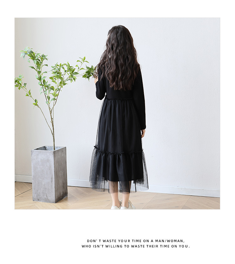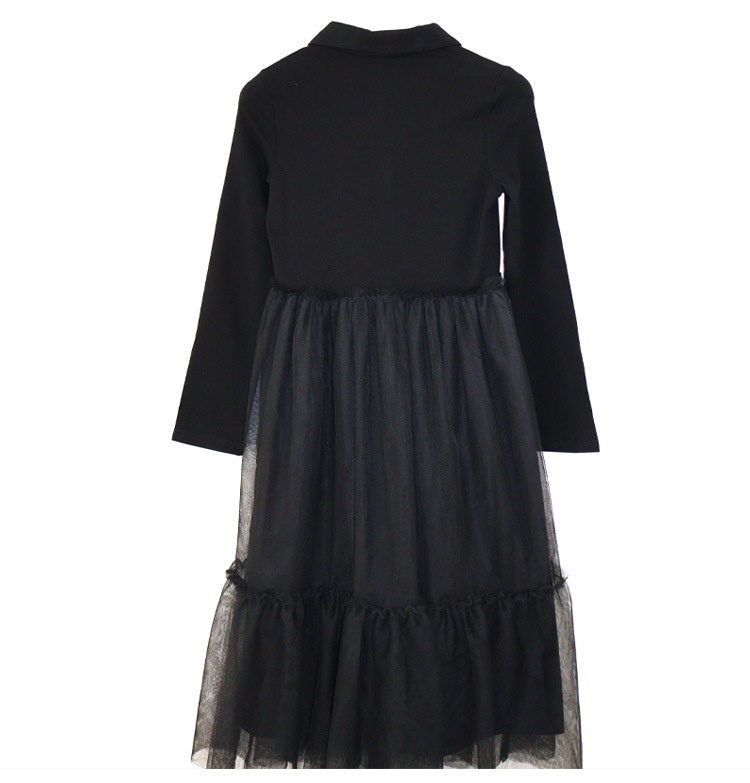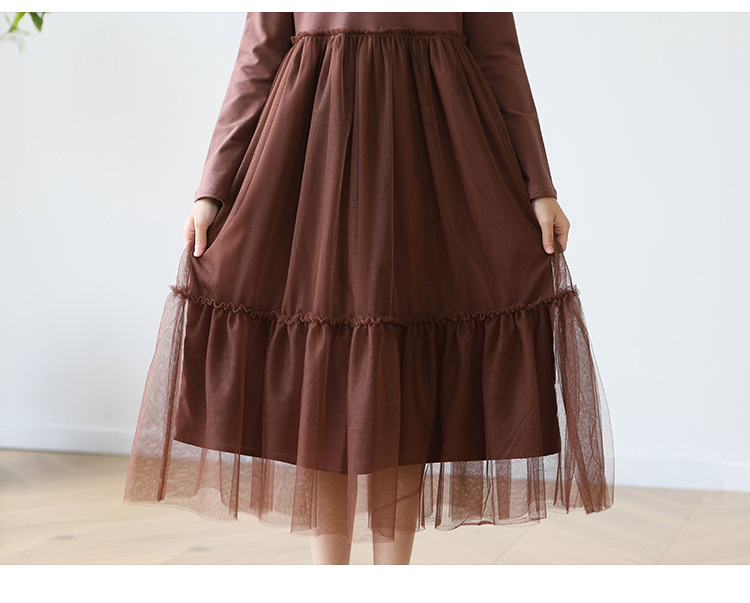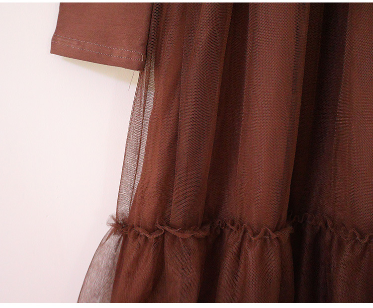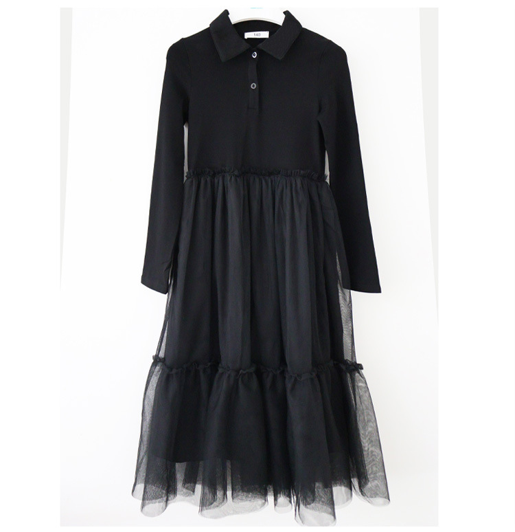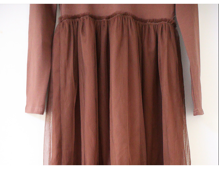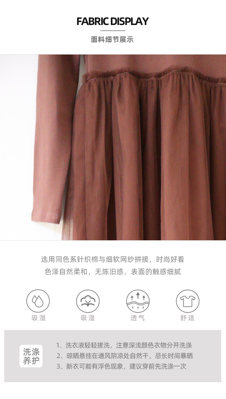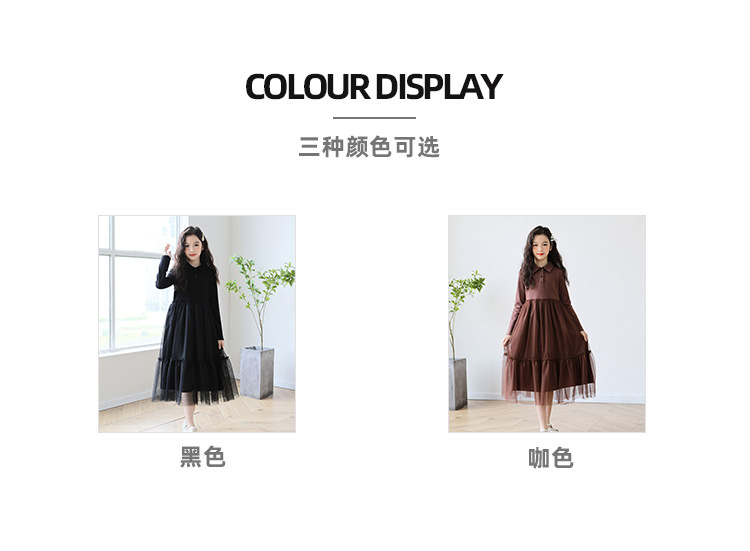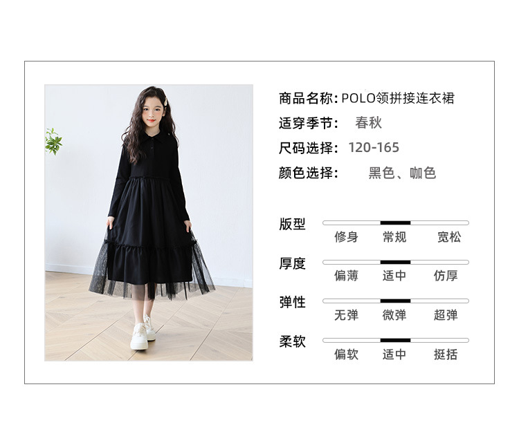 针织棉拼接纱裙,POLO领,流行咖色及百搭黑色,