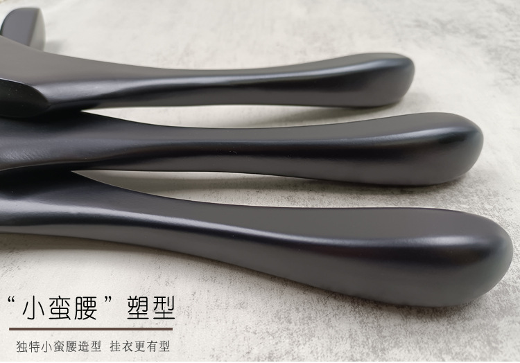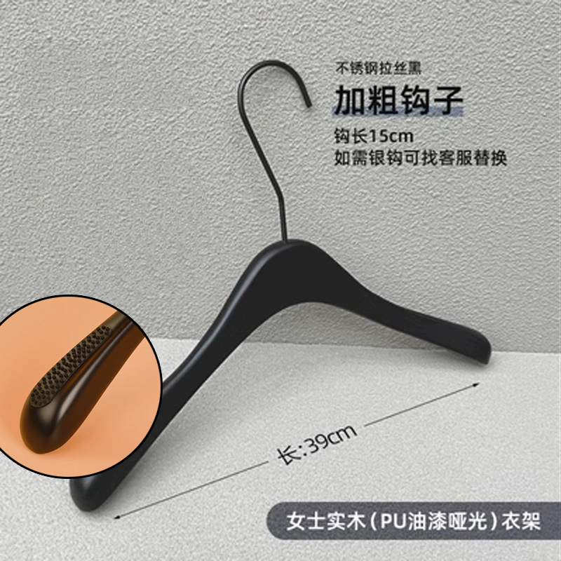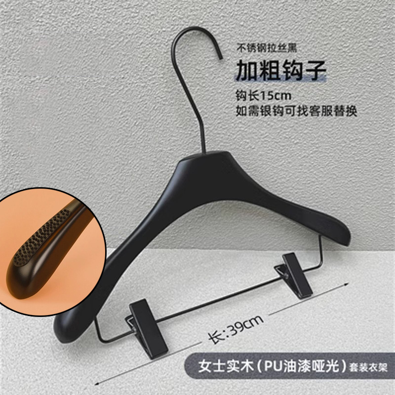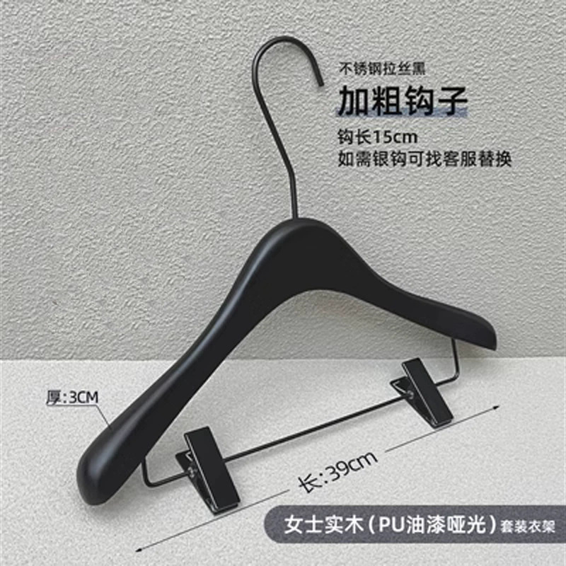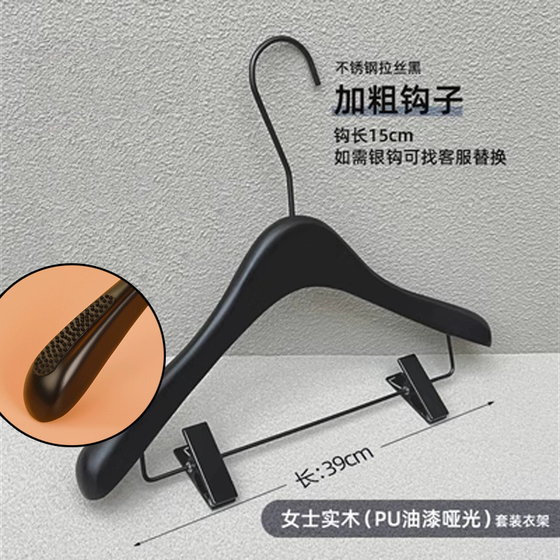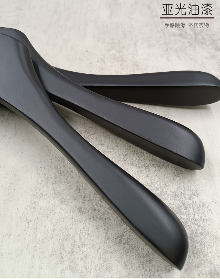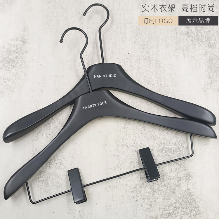 의류 매장 블랙 솔리드 우드 행거 하이 엔드 인터넷 축하 의류 교수형 여성용 미끄럼 방지 원활한 나무 바지 선반 맞춤형 로고