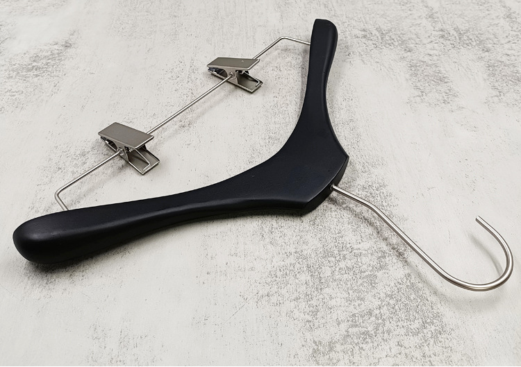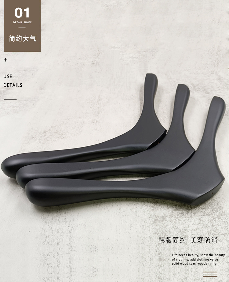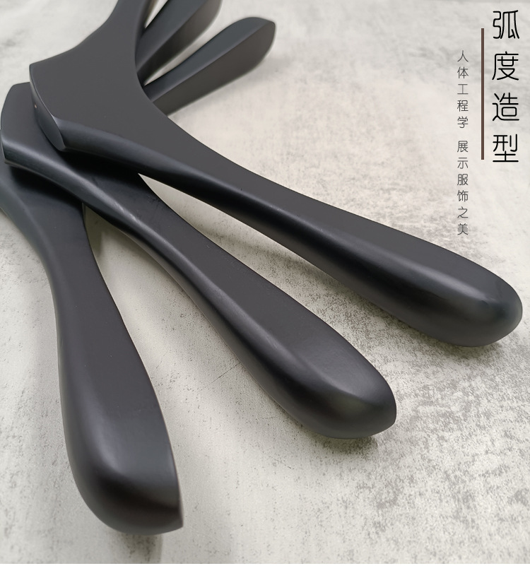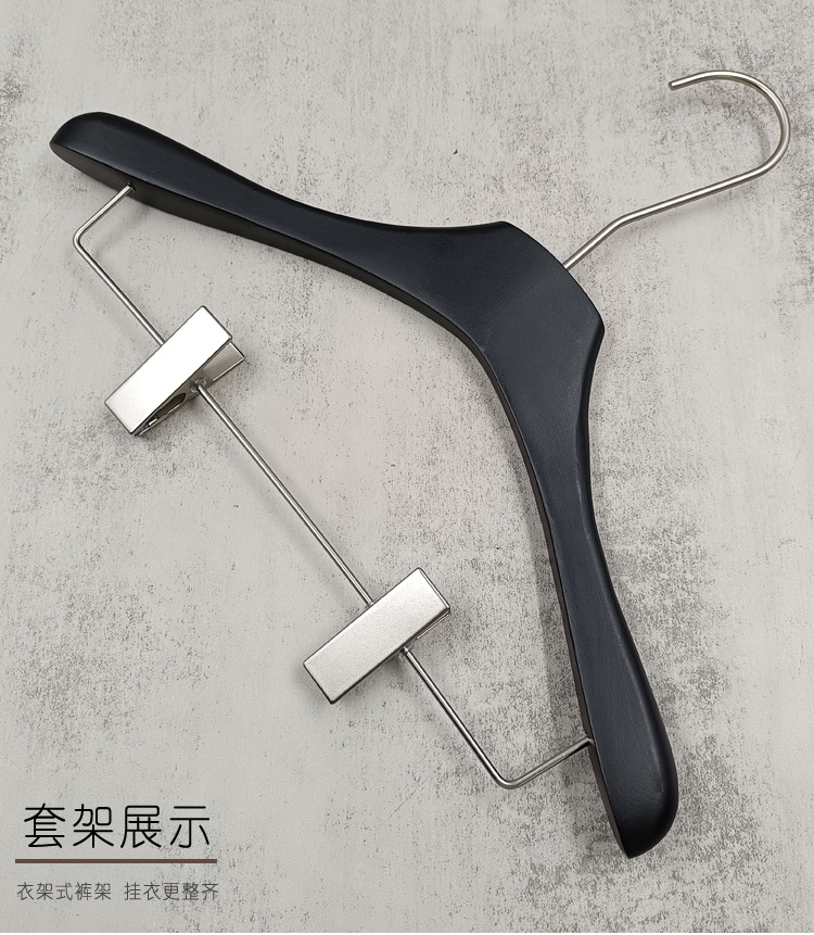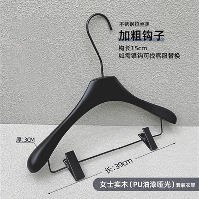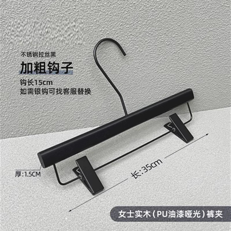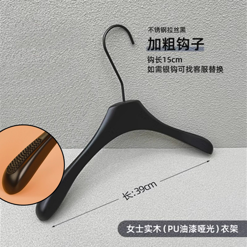 의류 매장 블랙 솔리드 우드 행거 하이 엔드 인터넷 축하 의류 교수형 여성용 미끄럼 방지 원활한 나무 바지 선반 맞춤형 로고