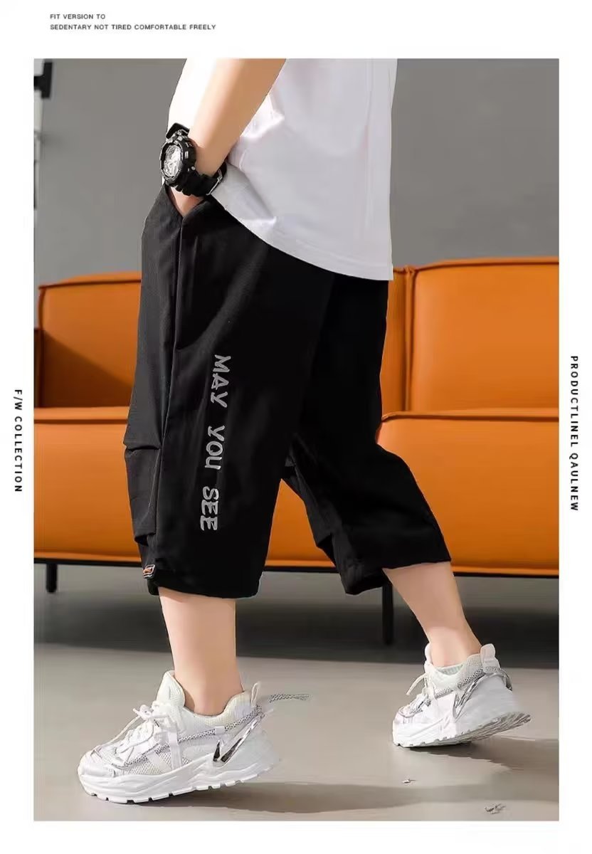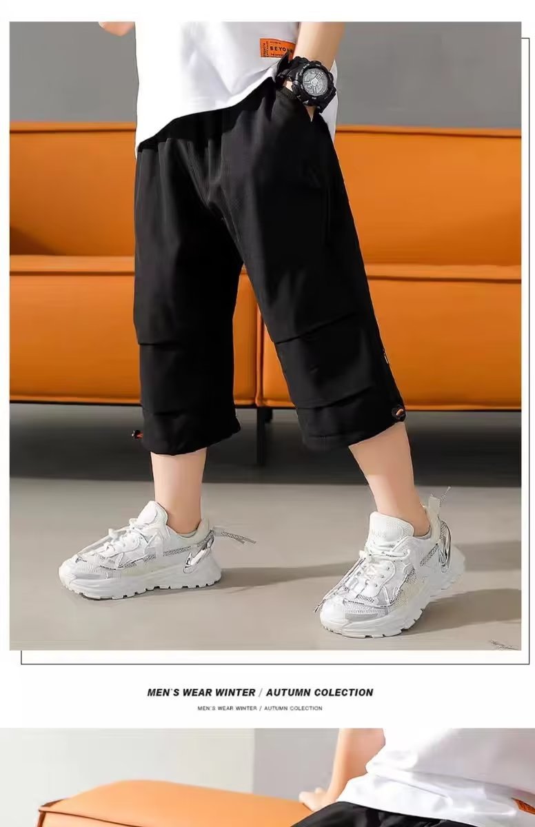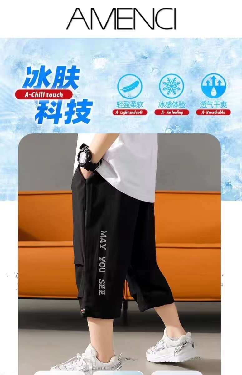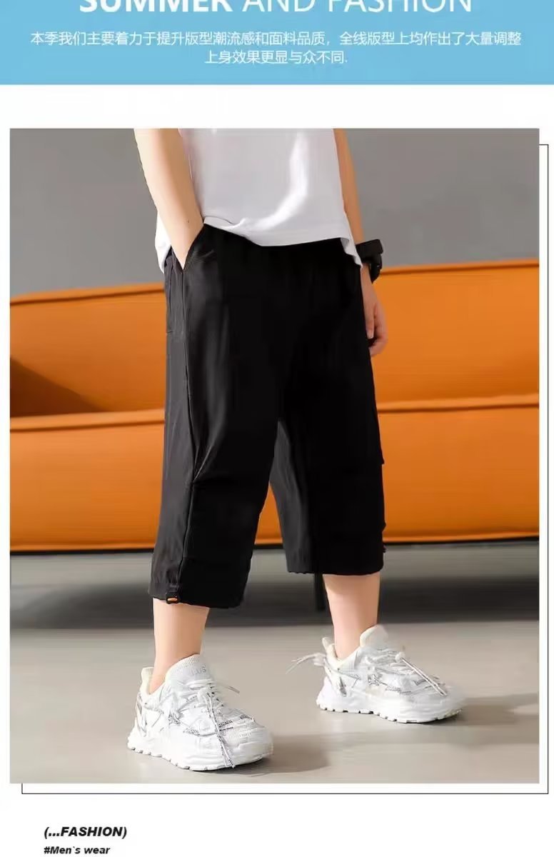 소년 자른 바지 아이스 실크 여름 반바지 어린이 빠른 건조 바지 스포츠 크롭 바지 큰 어린이 여름 소년 아동복스토어 가기