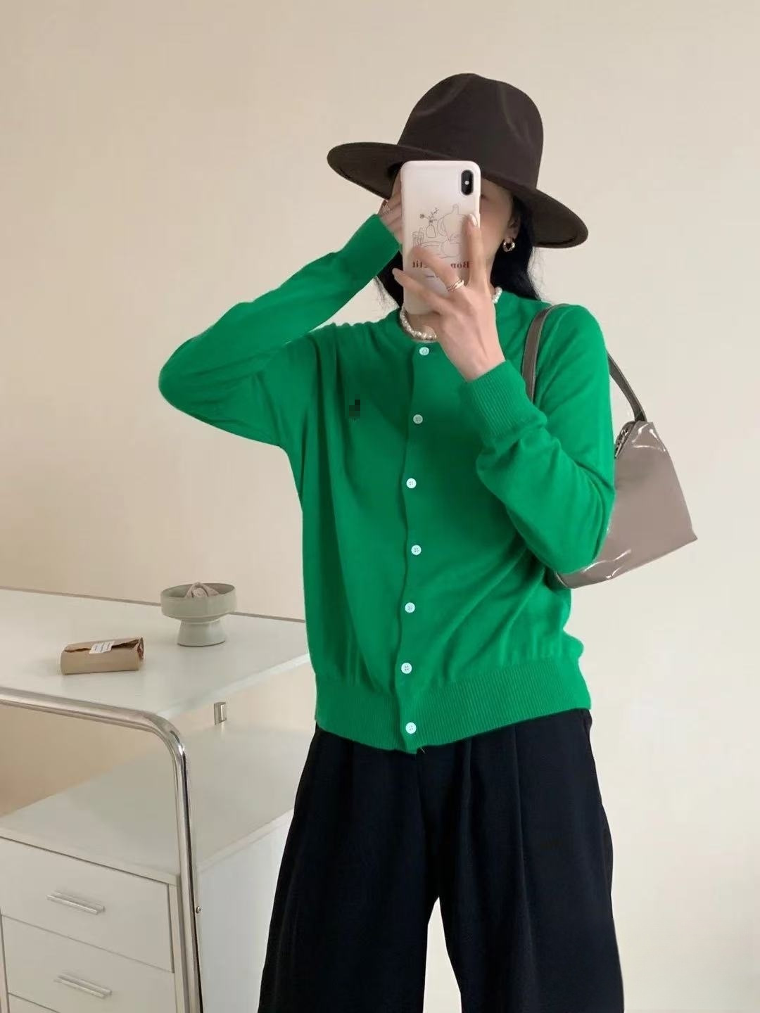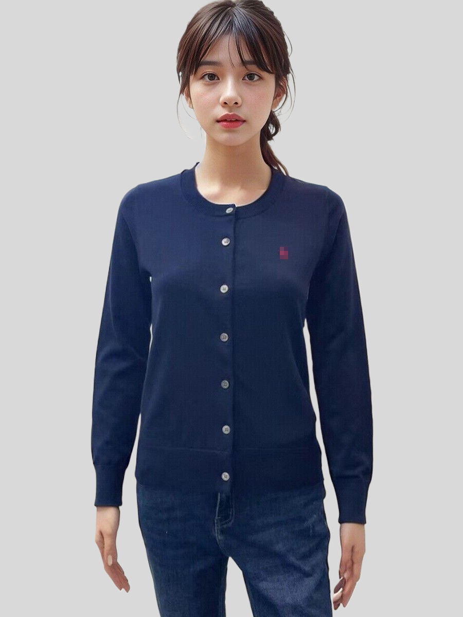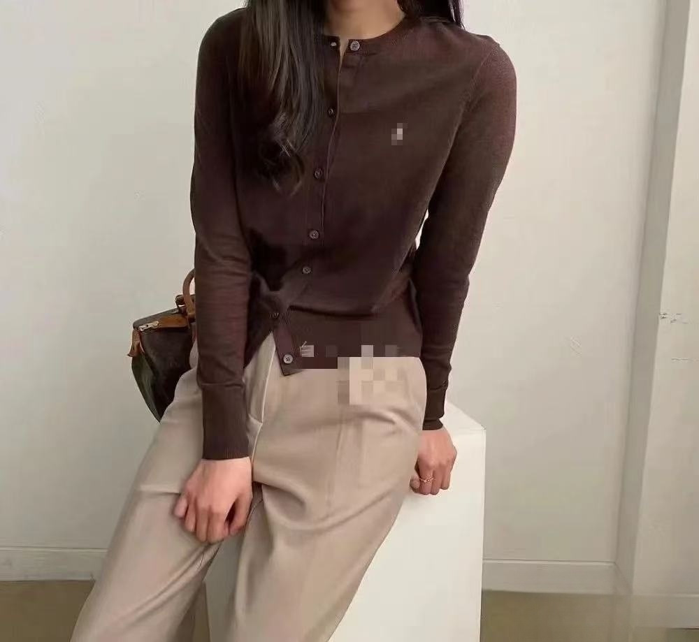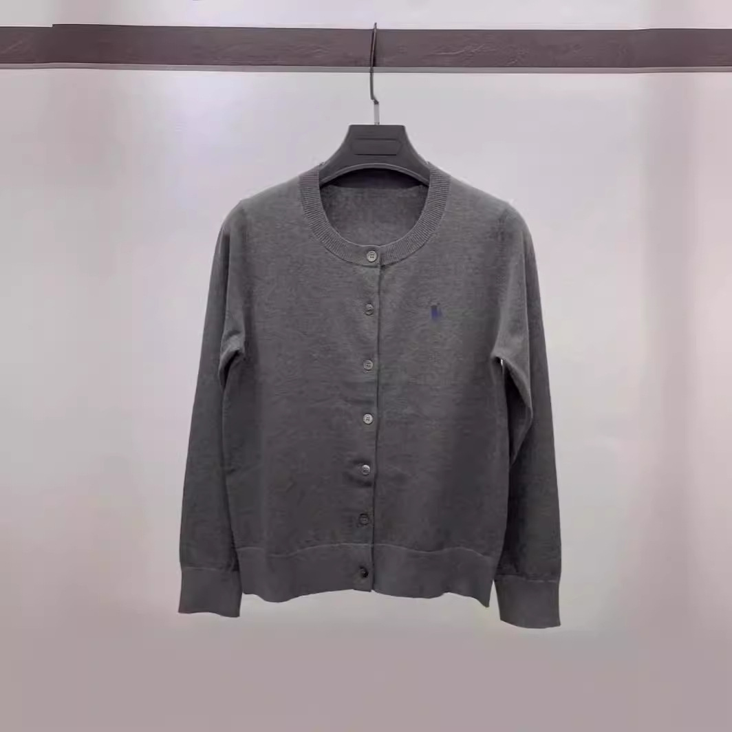 2025 년 이른 봄 새 면 여성 포니 자수 니트 둥근 목 카디건