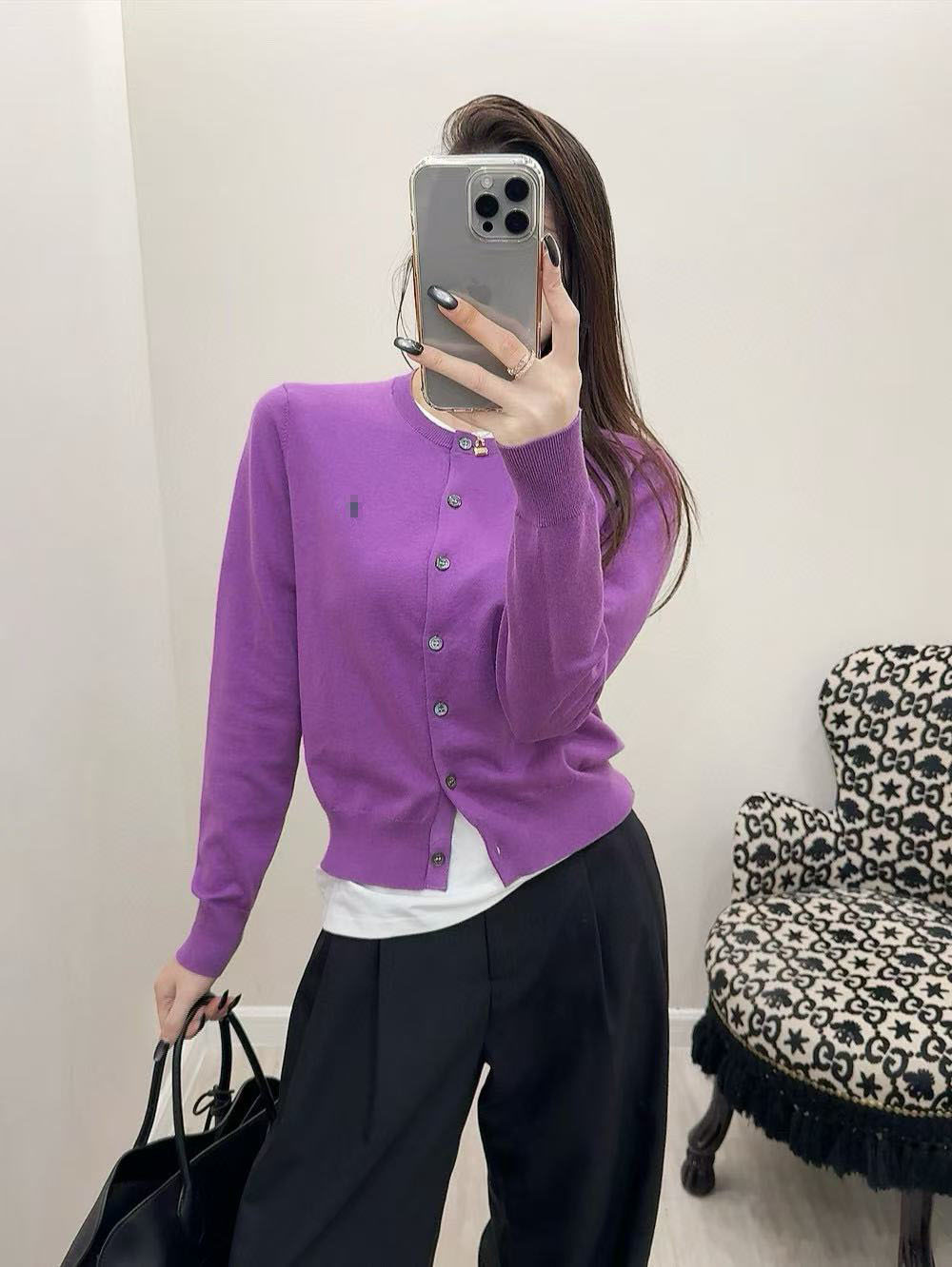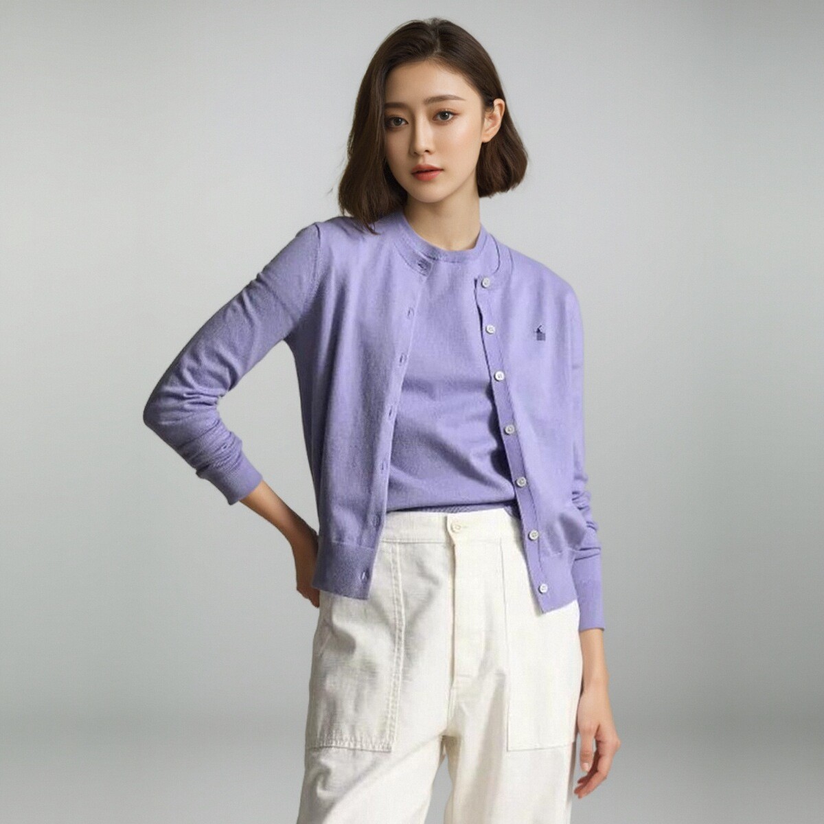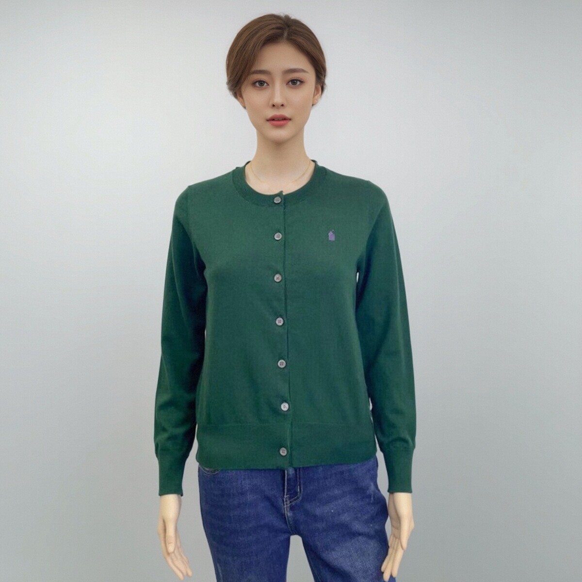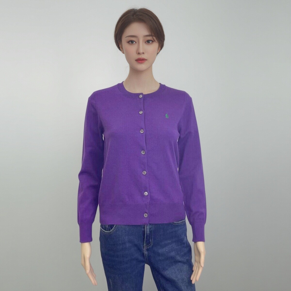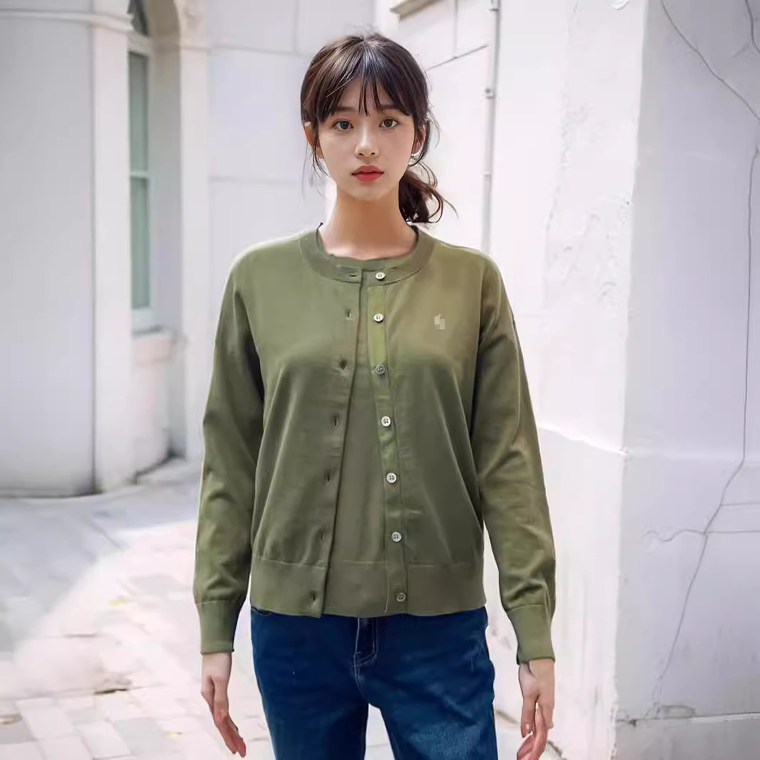 2025 년 이른 봄 새 면 여성 포니 자수 니트 둥근 목 카디건스토어 가기