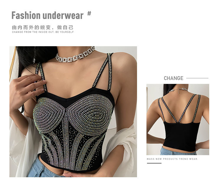 밝은 다이아몬드 아름다운 뒷면 편안한 스틸 링 브래지어 크기 크기 크기 원활한 탄성 풀 다이아몬드 나이트 클럽 유럽과 미국의 수출 슬링스토어 가기
