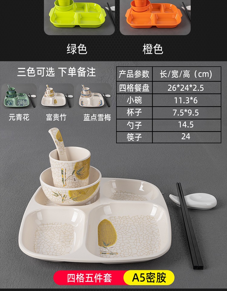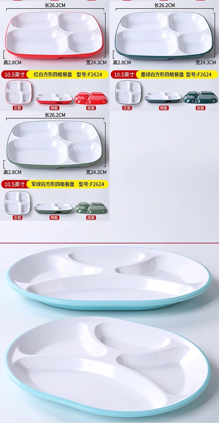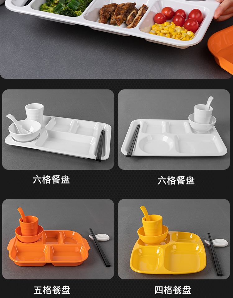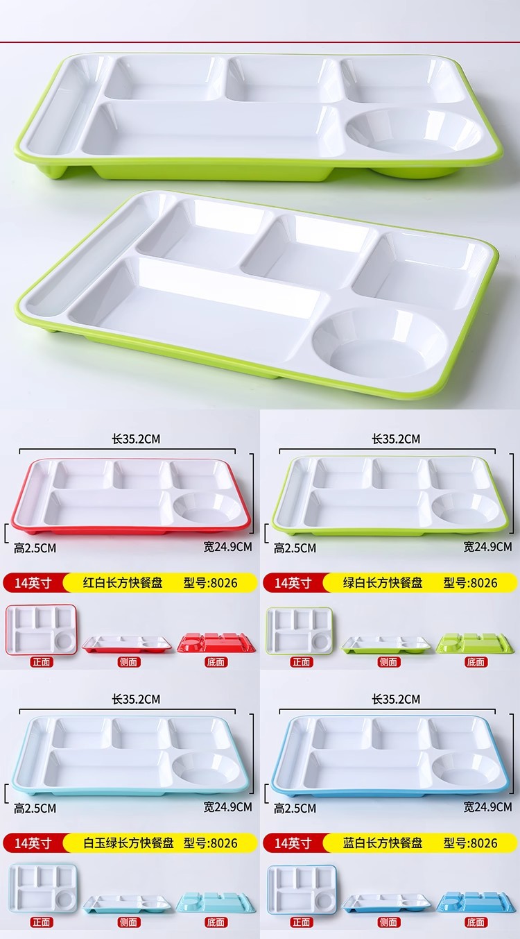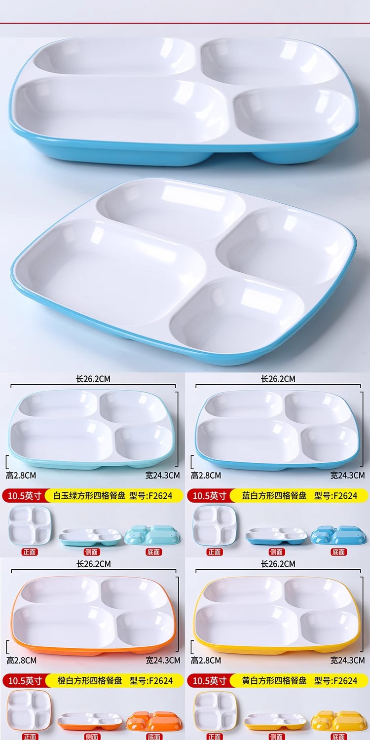 패스트 푸드 플레이트 상업용 멜라민 식기 플라스틱 스플릿 플레이트 4 6 플레이트 직원 셀프 서비스 학교 매점 플레이트스토어 가기