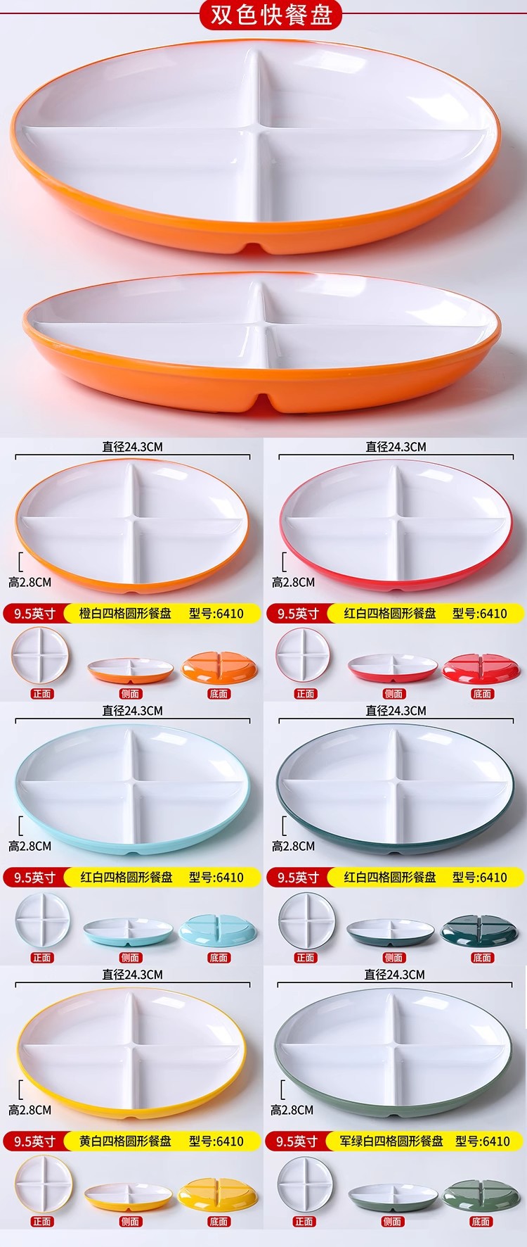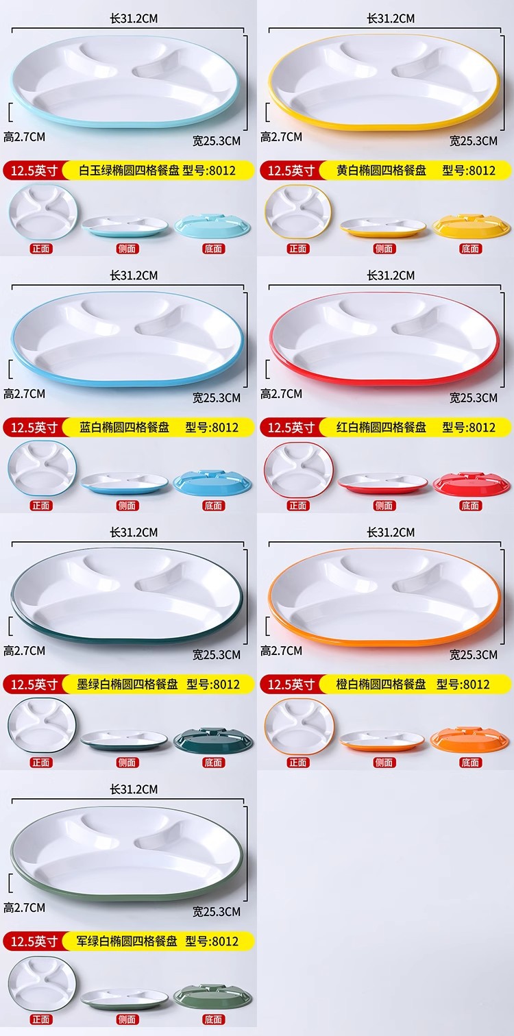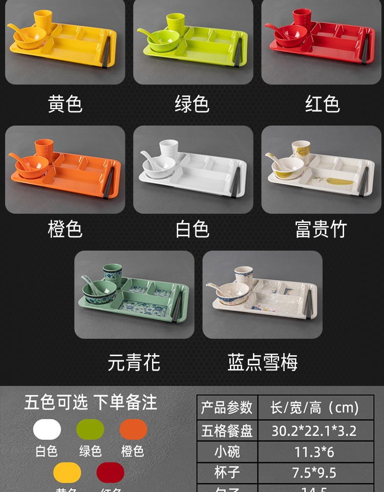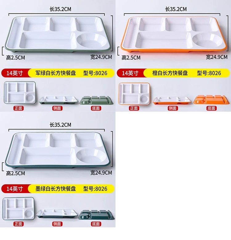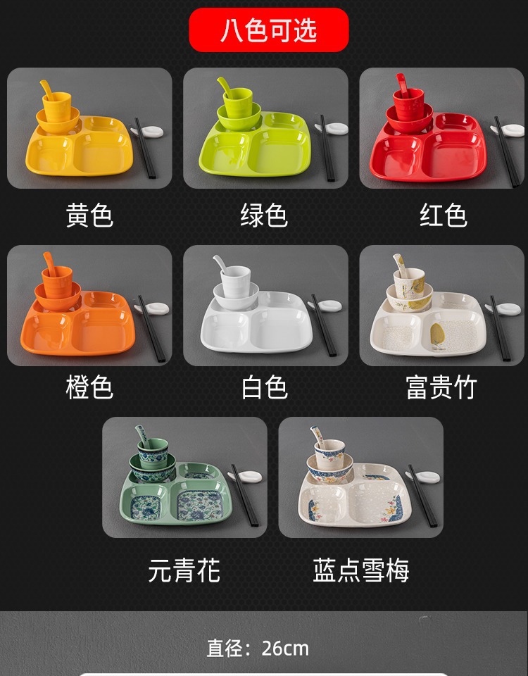 패스트 푸드 플레이트 상업용 멜라민 식기 플라스틱 스플릿 플레이트 4 6 플레이트 직원 셀프 서비스 학교 매점 플레이트스토어 가기
