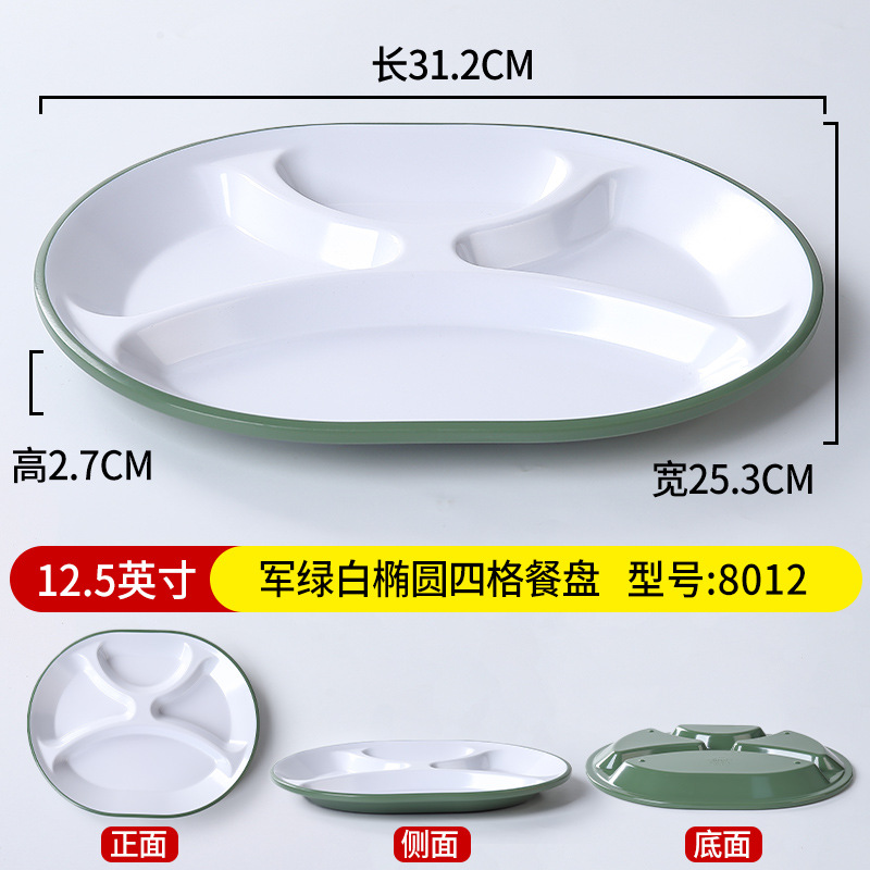 • 12.5inch 육군 녹색과 흰색 타원형 4칸 디너 접시 8012