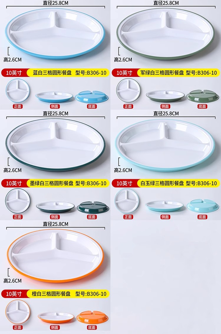 • 10inch 짙은 녹색과 흰색 3칸 원형 디너 접시 B306-10