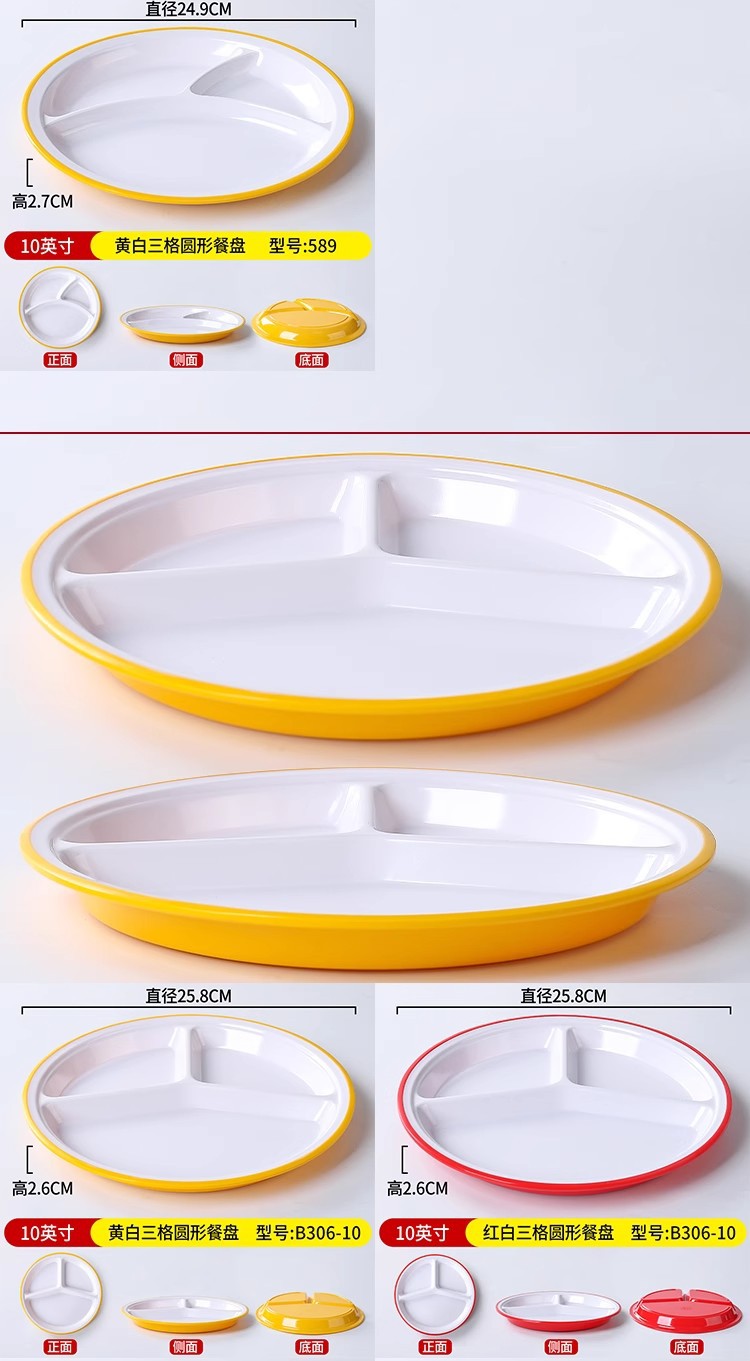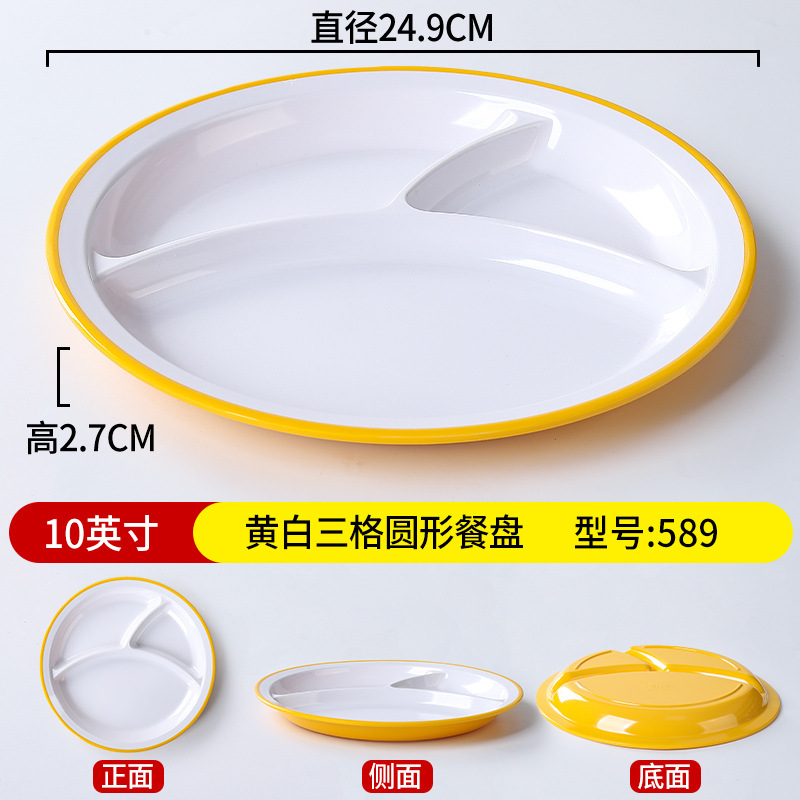 • 10inch 노란색과 흰색 3칸 원형 디너 접시 589