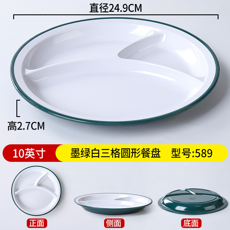 • 10inch 짙은 녹색과 흰색 3칸 원형 디너 접시 589