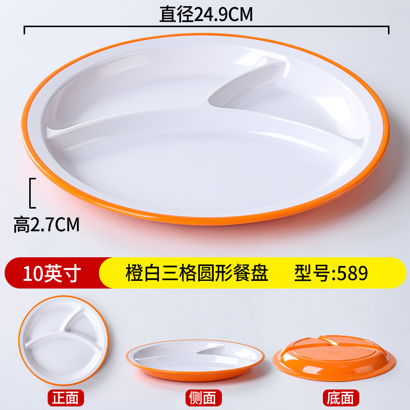 • 10inch 오렌지와 화이트 3칸 원형 디너 접시 589