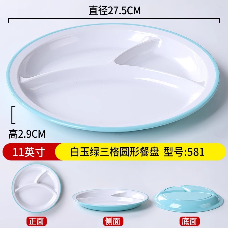 • 11inch 진한 녹색과 흰색 3칸 원형 디너 접시 581