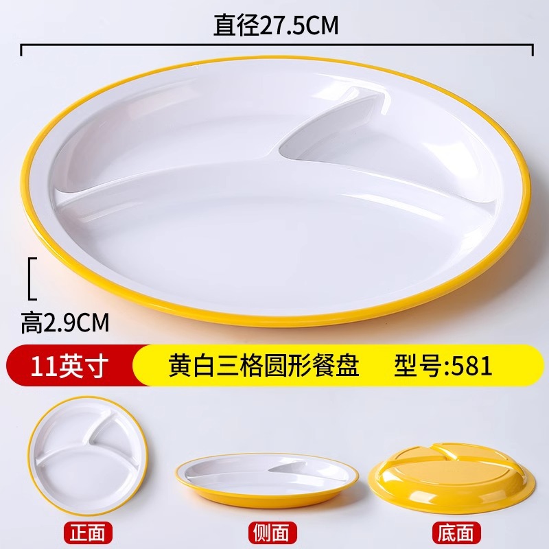 • 11inch 노란색과 흰색 3칸 원형 디너 접시 581