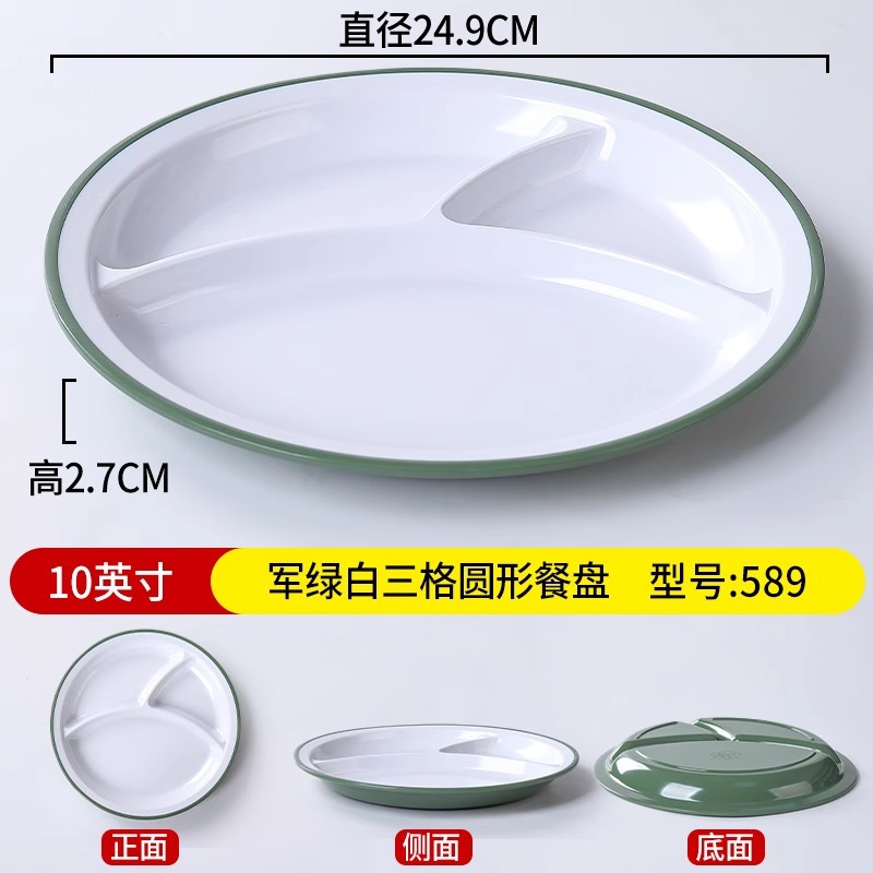 • 10inch 밀리터리 그린 & 화이트 3칸 원형 디너 플레이트 589