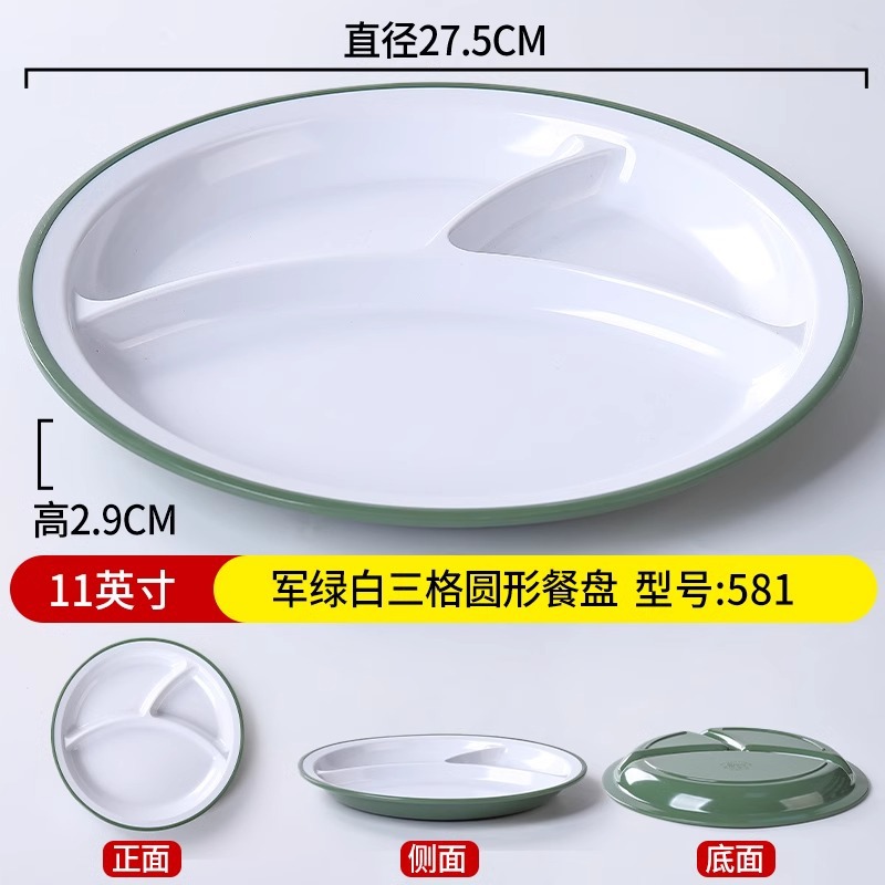 • 11inch 밀리터리 그린 및 화이트 3칸 원형 디너 플레이트 581
