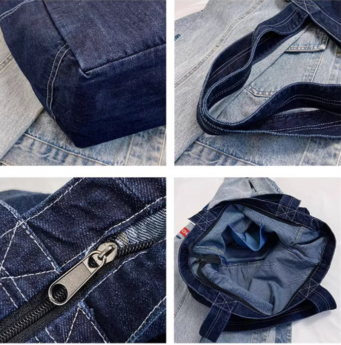 일본 데님 숄더백 대용량 쇼핑백 어머니 가방 토트 백 학생 스쿨 백 메이크업 가방 통근 가방스토어 가기