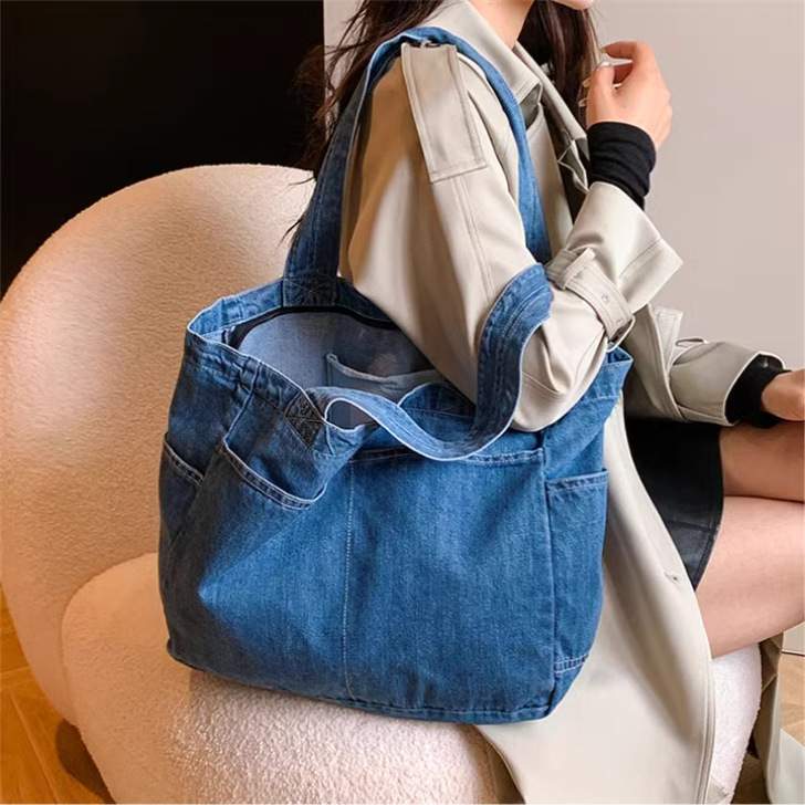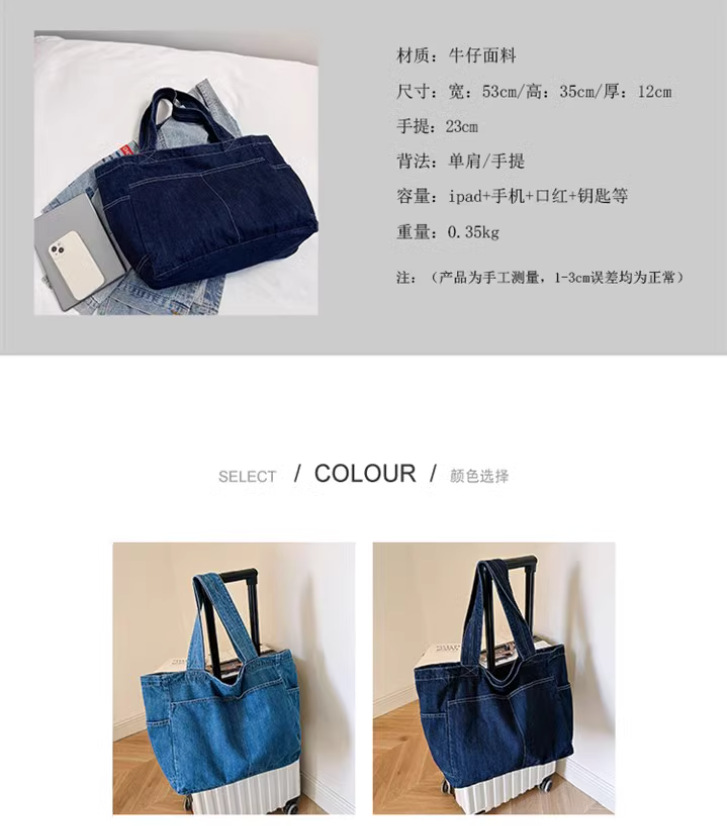 일본 데님 숄더백 대용량 쇼핑백 어머니 가방 토트 백 학생 스쿨 백 메이크업 가방 통근 가방