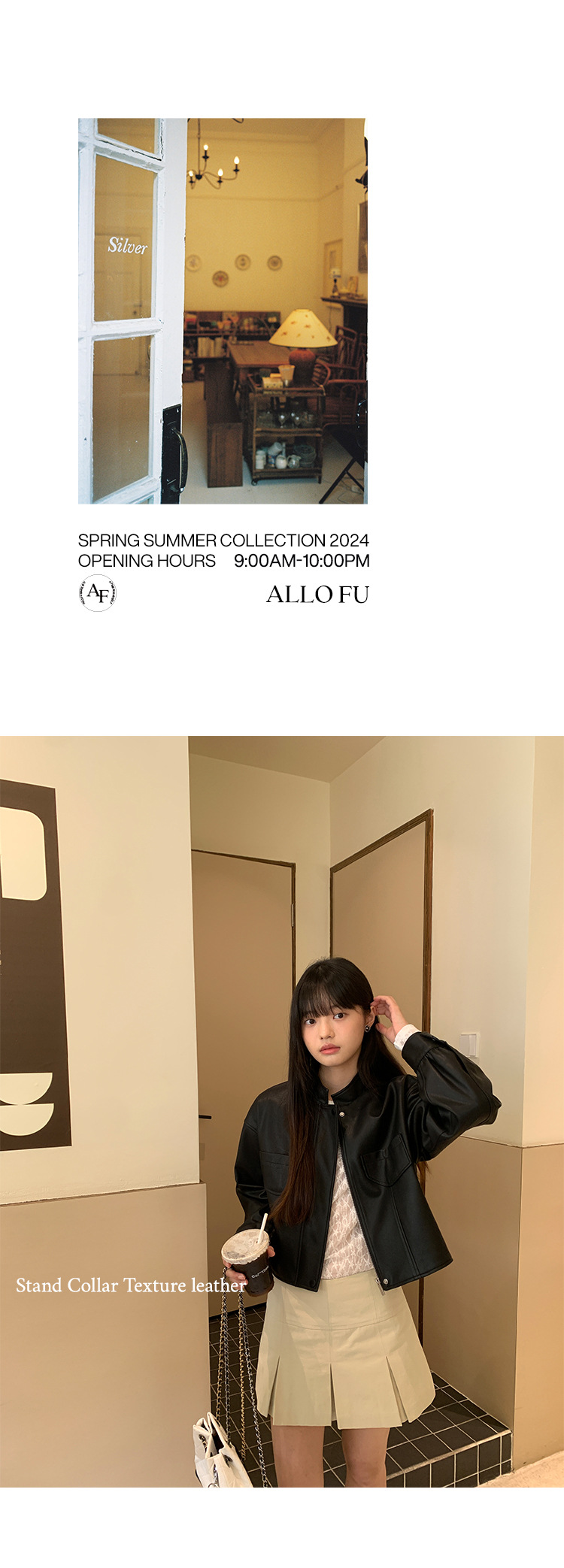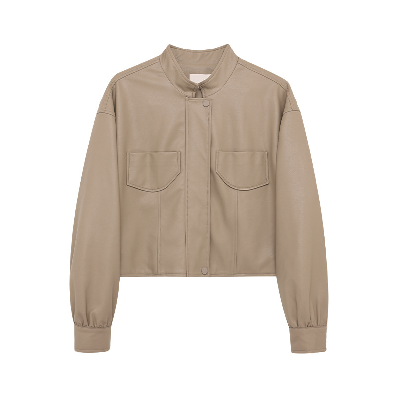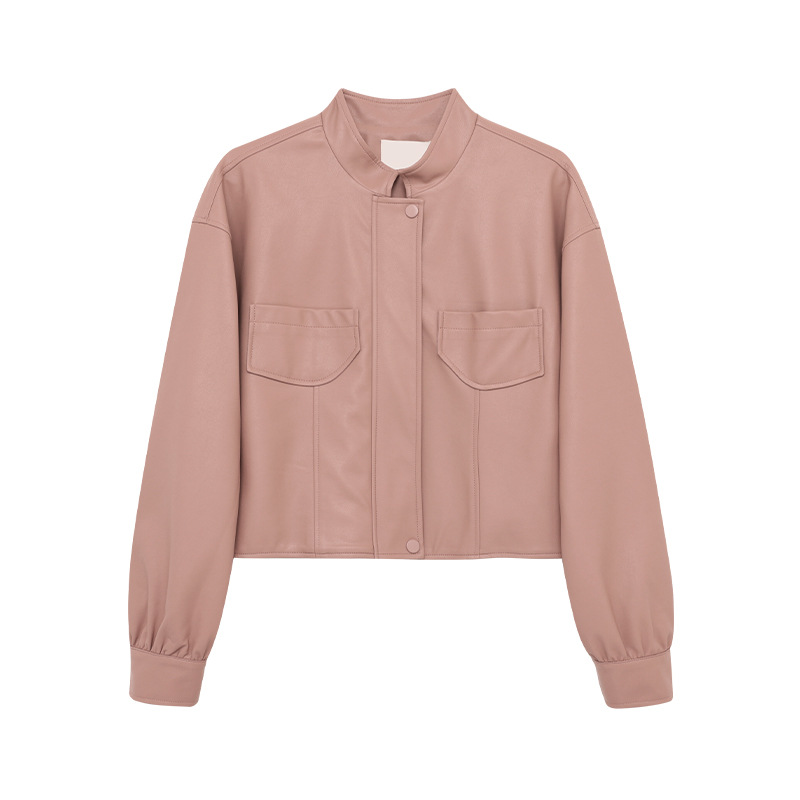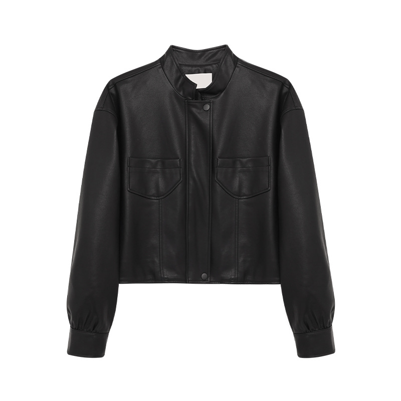 AlloFu 십삼행 신상 여성복 스탠드 칼라 하이 스트리트 쿨하고 멋진 가죽 자켓 여성 캐주얼 상의 22605