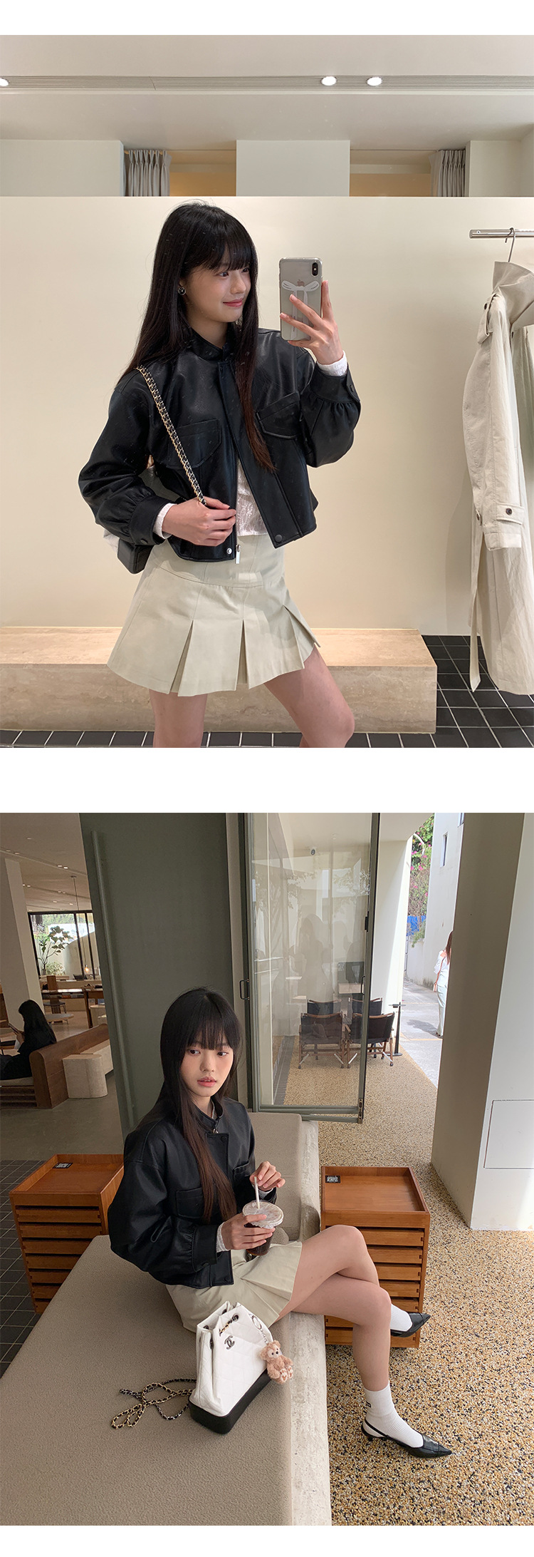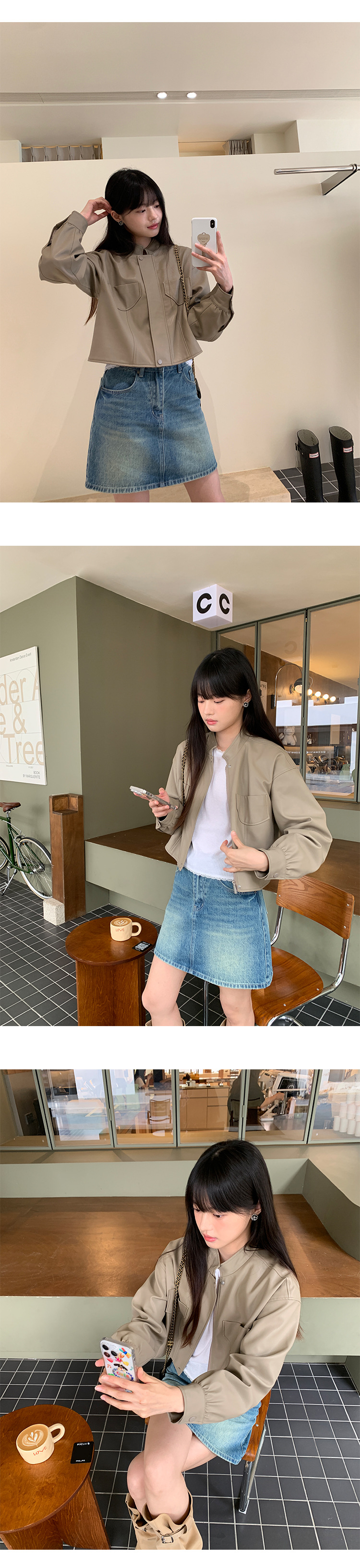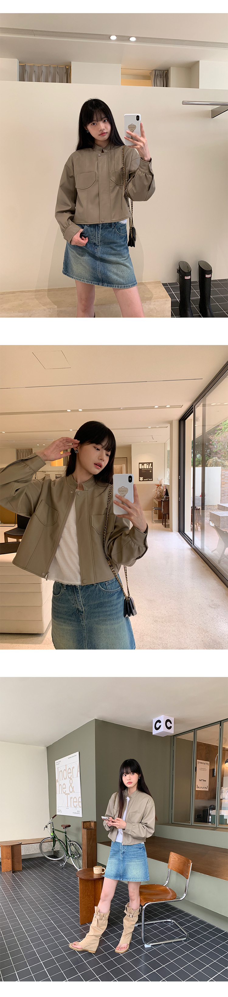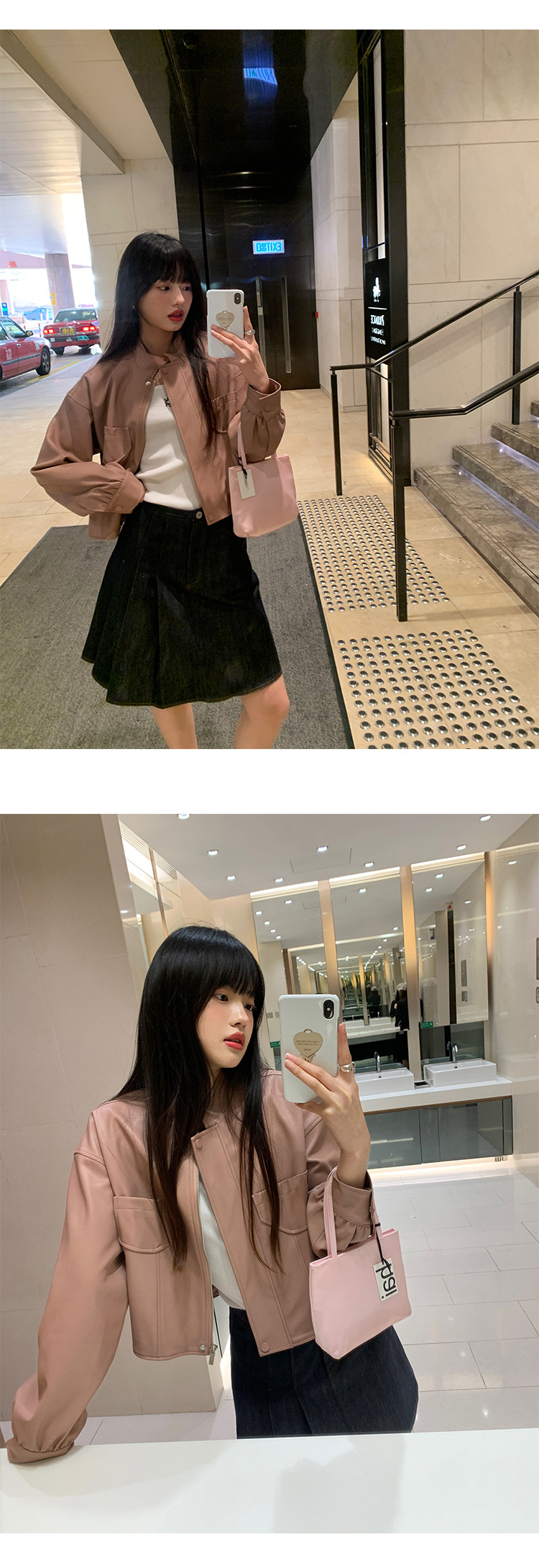 AlloFu 십삼행 신상 여성복 스탠드 칼라 하이 스트리트 쿨하고 멋진 가죽 자켓 여성 캐주얼 상의 22605스토어 가기