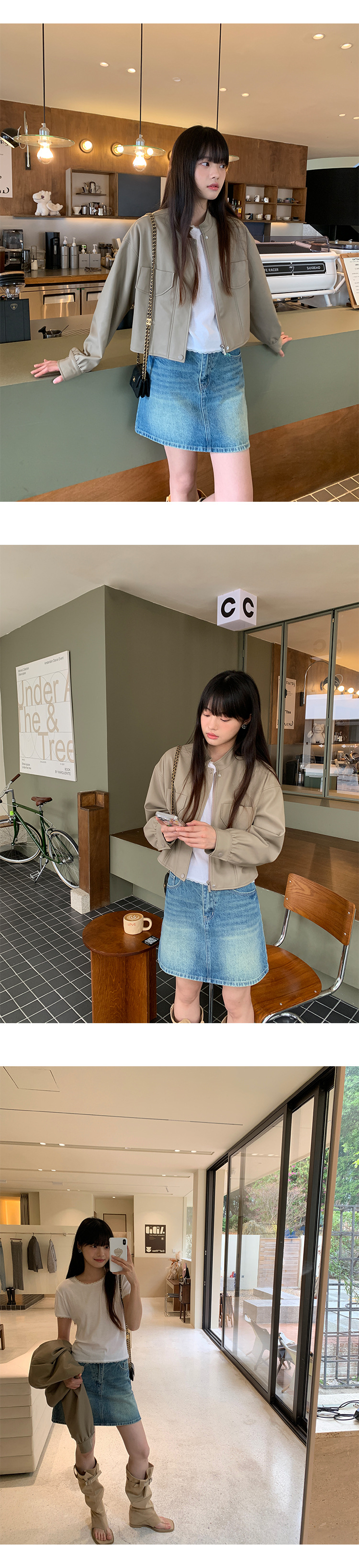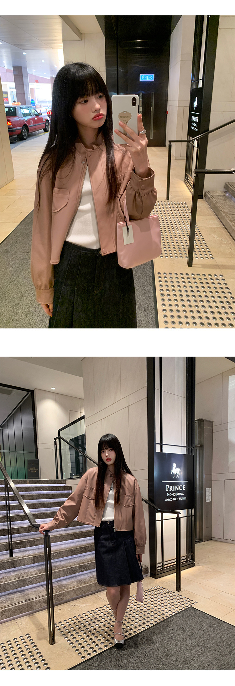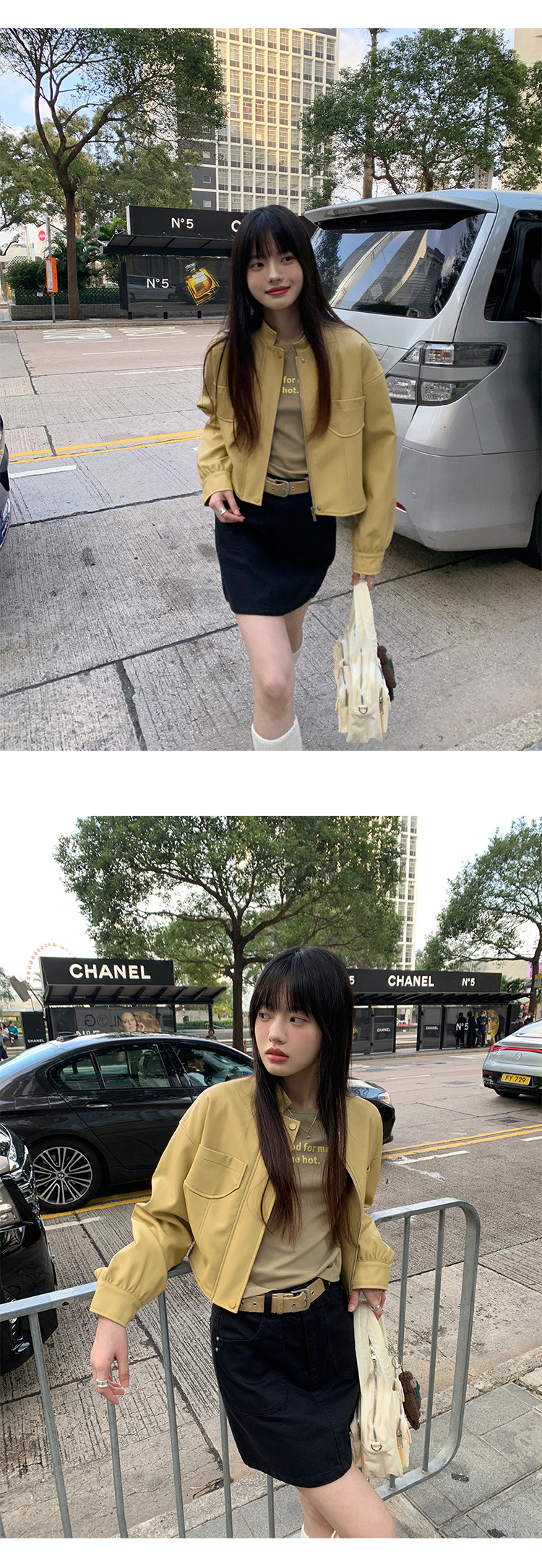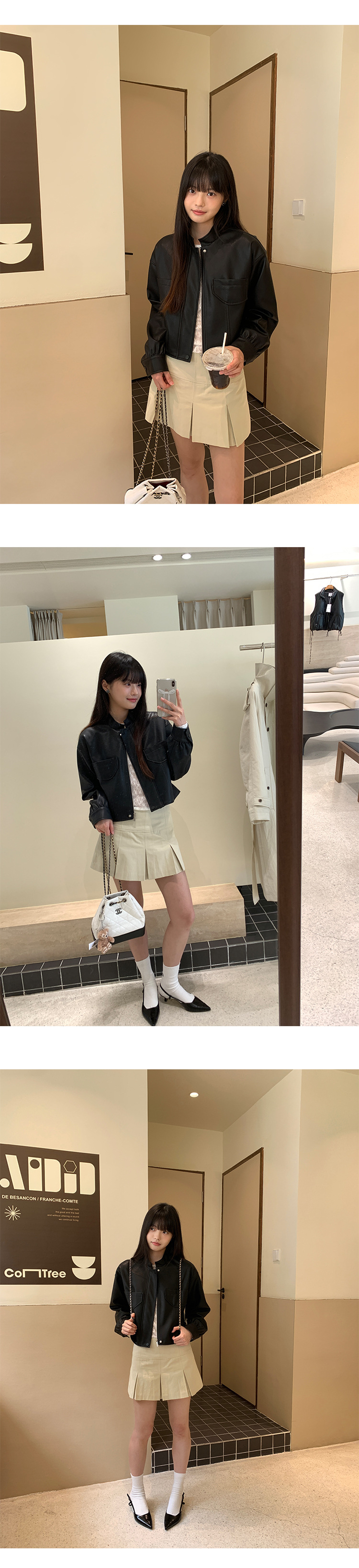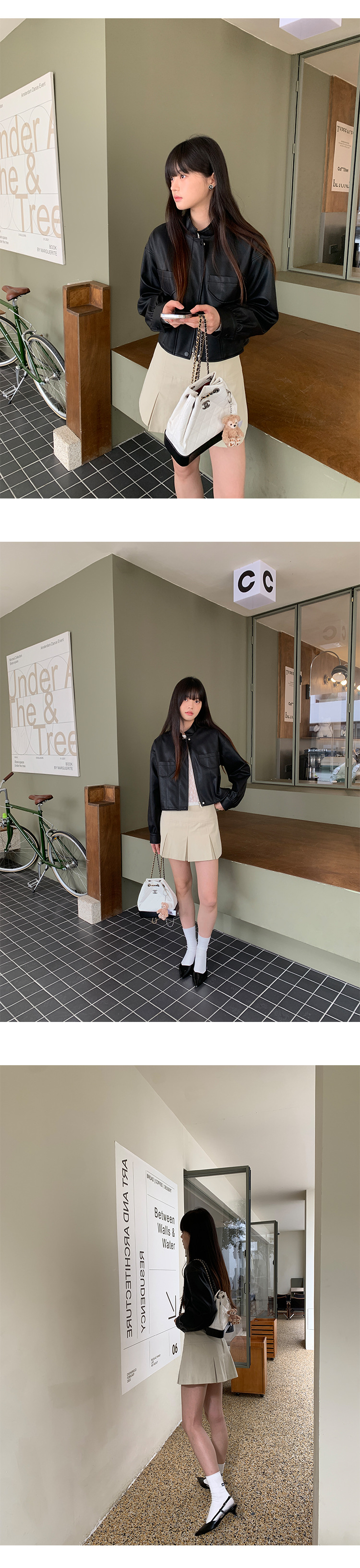 AlloFu 십삼행 신상 여성복 스탠드 칼라 하이 스트리트 쿨하고 멋진 가죽 자켓 여성 캐주얼 상의 22605스토어 가기