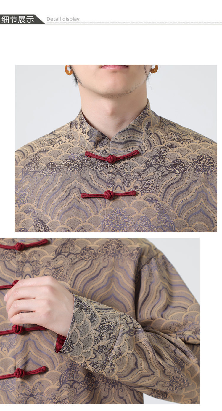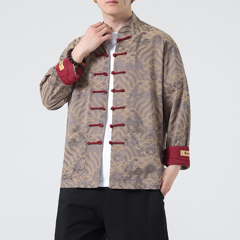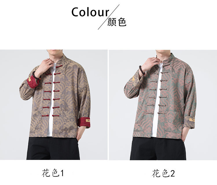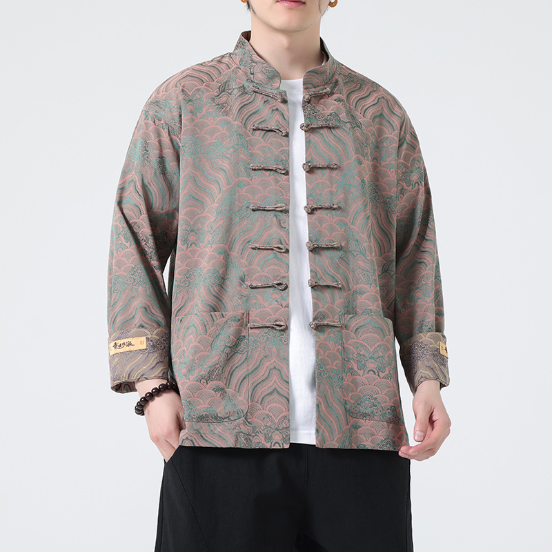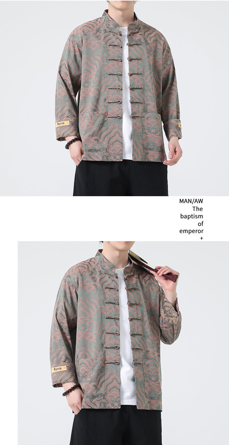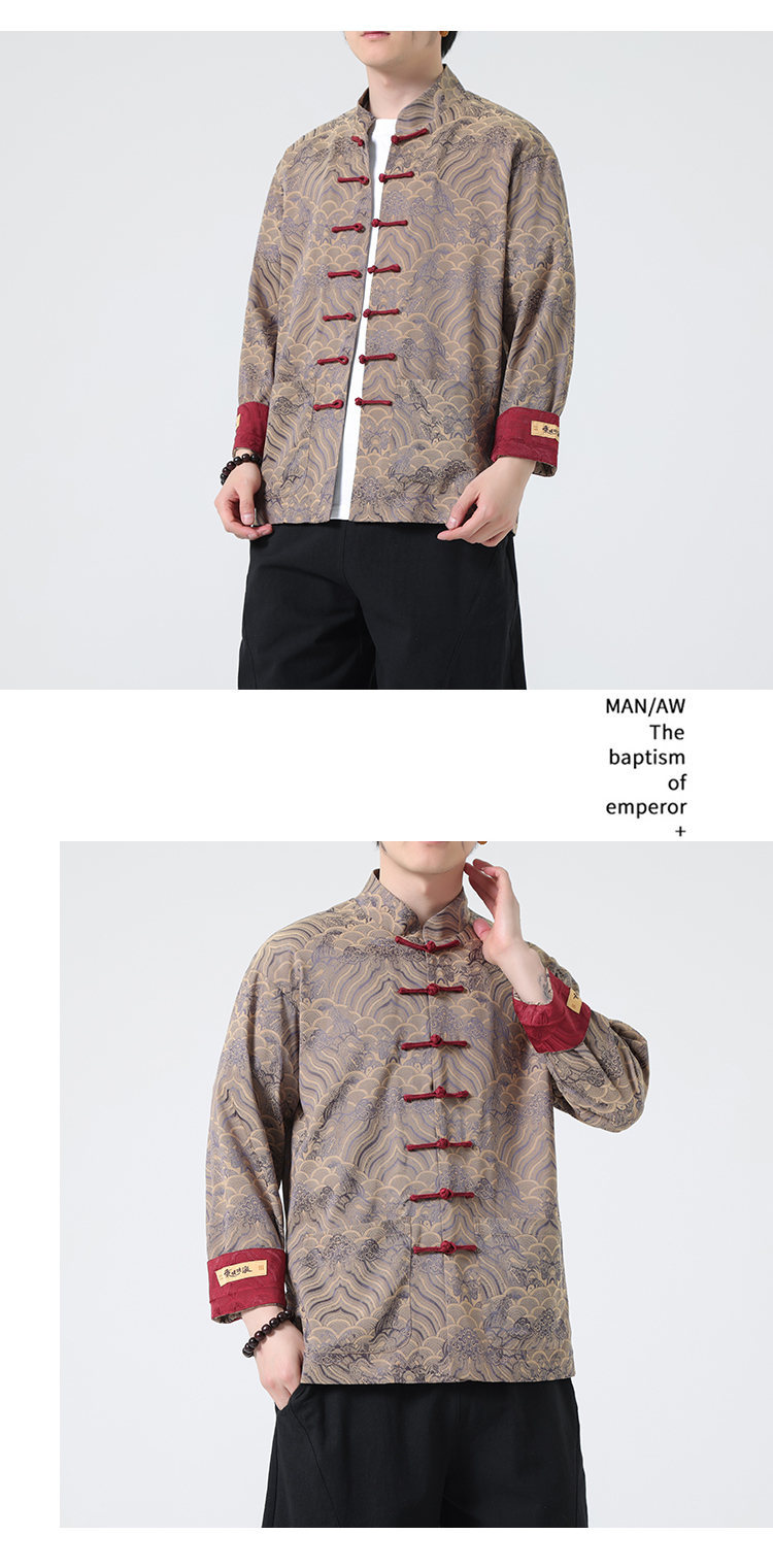 탕 세트 남성 셔츠 남자의 새로운 중국 스타일 중국 스타일 남성 버클 긴 소매 스탠드 칼라 셔츠 중국 스타일 한후 청소년스토어 가기