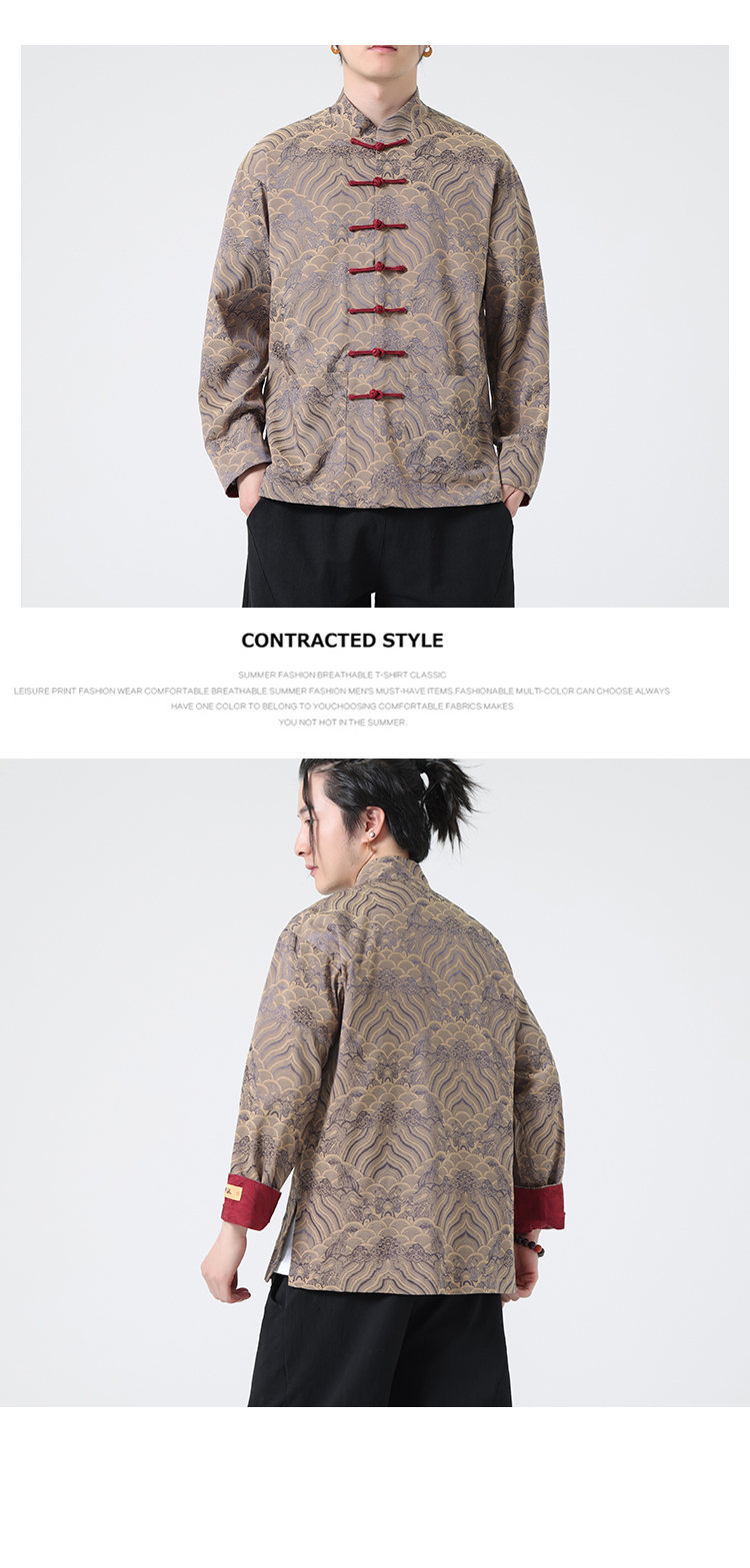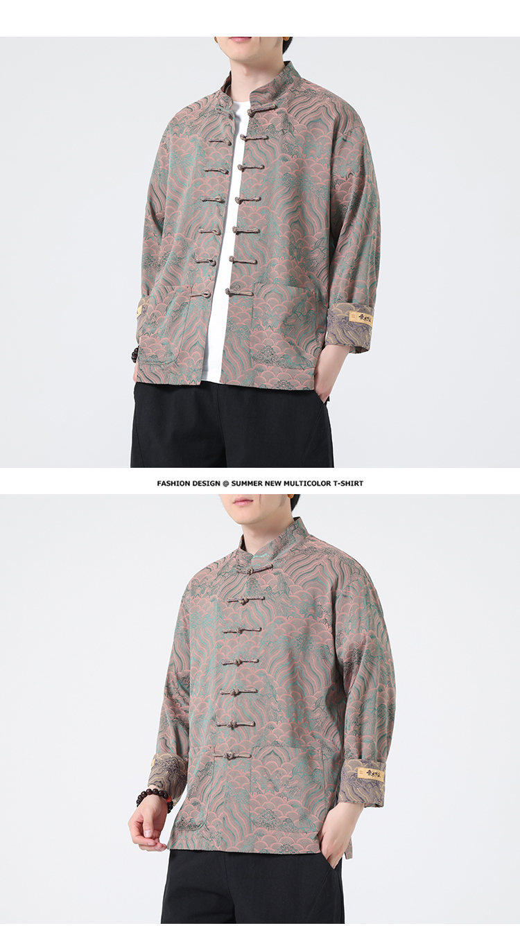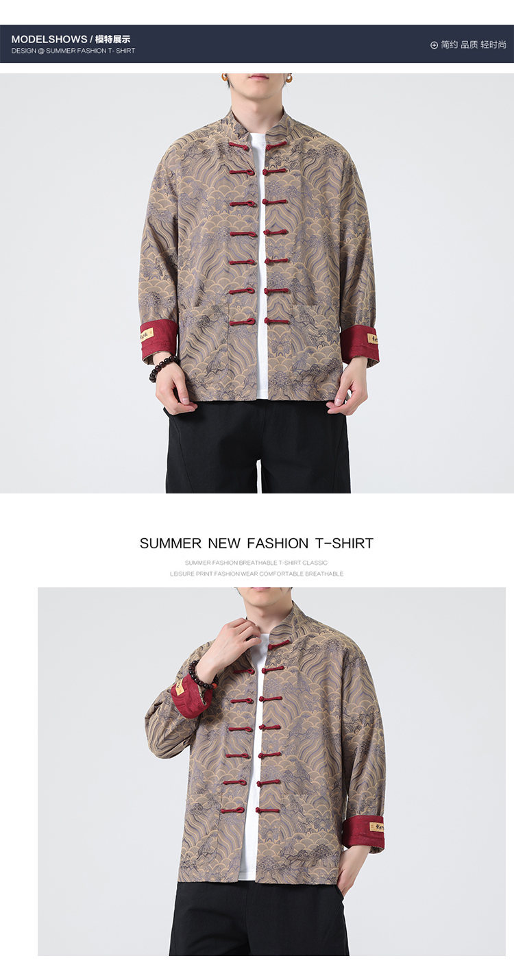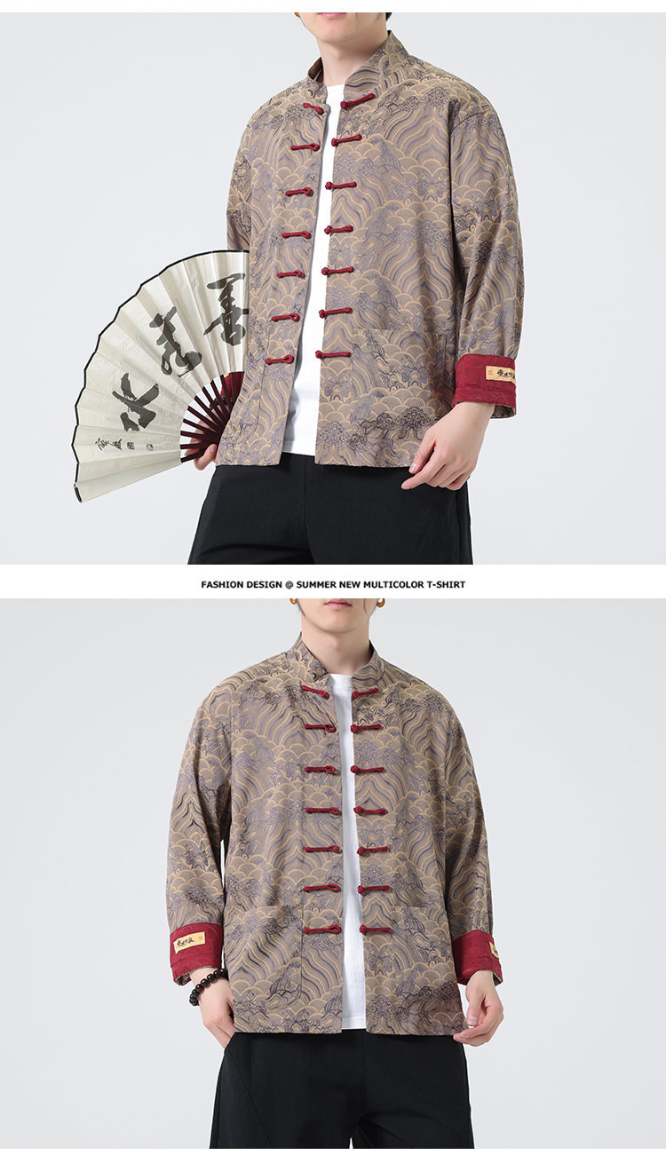 탕 세트 남성 셔츠 남자의 새로운 중국 스타일 중국 스타일 남성 버클 긴 소매 스탠드 칼라 셔츠 중국 스타일 한후 청소년스토어 가기