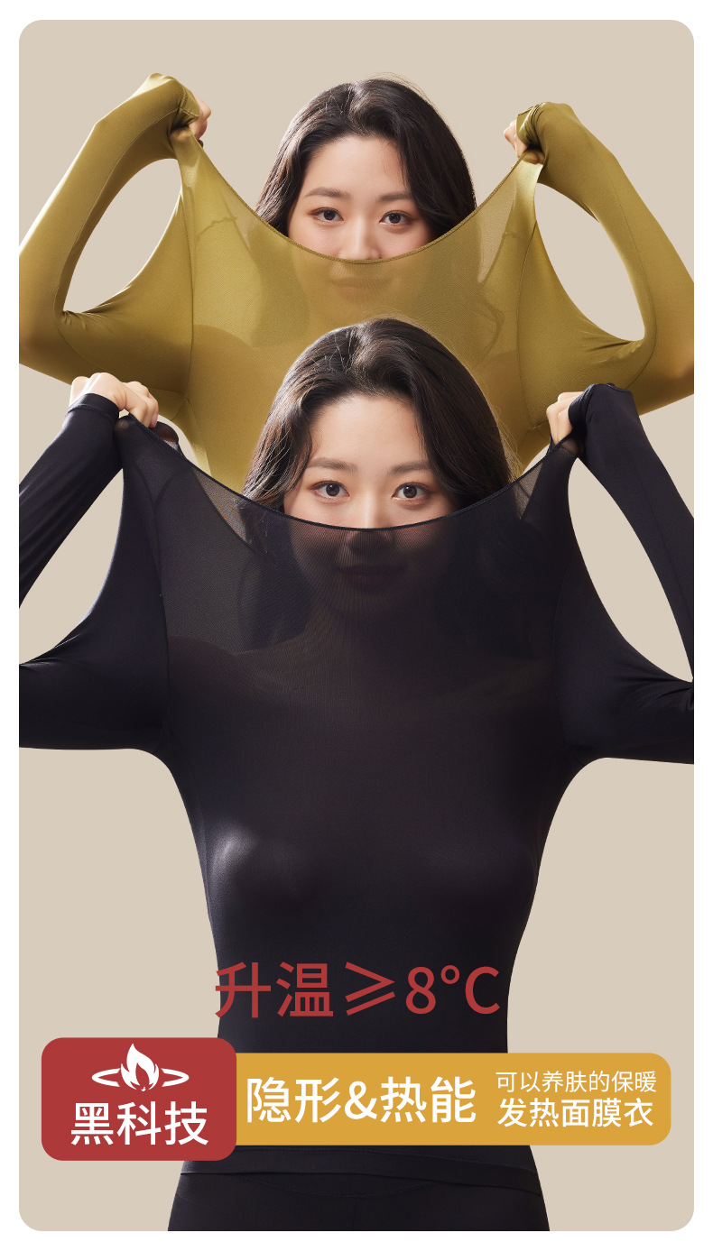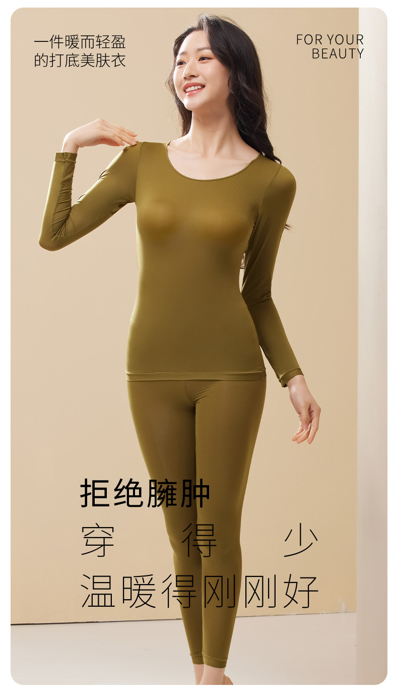 스킨 케어 의류 마스크 초박형 뜨거운 열 속옷 여성 가을 의류 긴 바지 세트 경량 스킨 케어 의류베이스스토어 가기