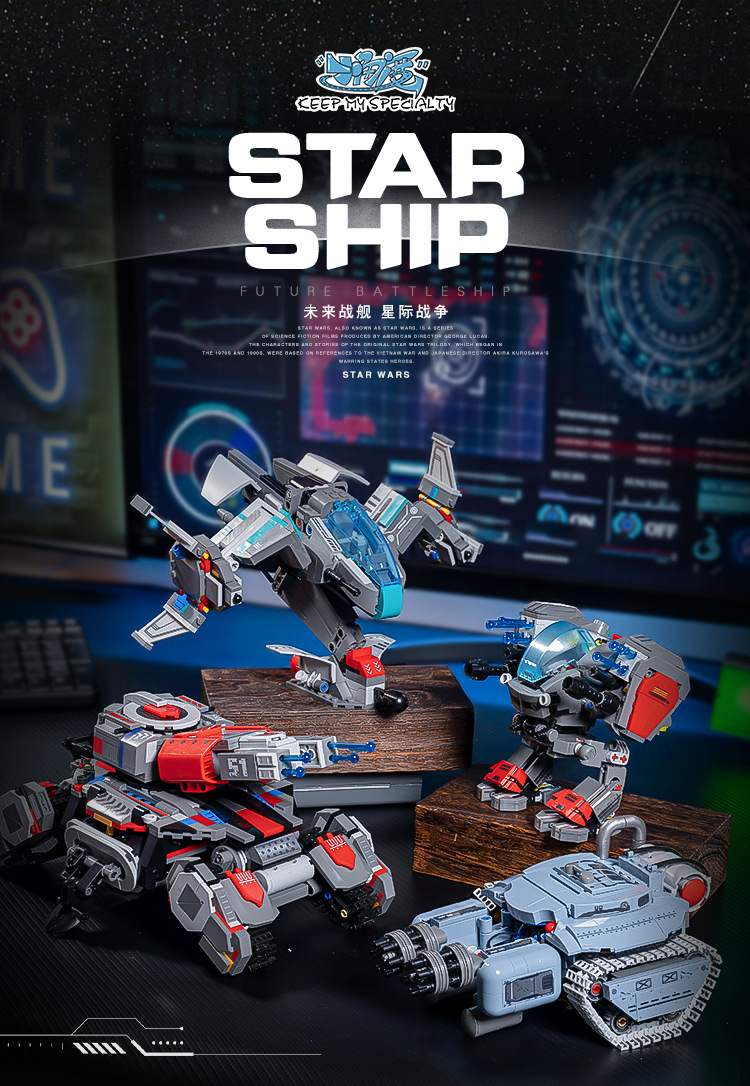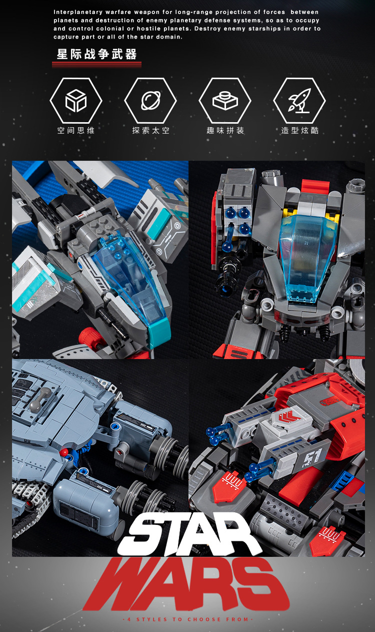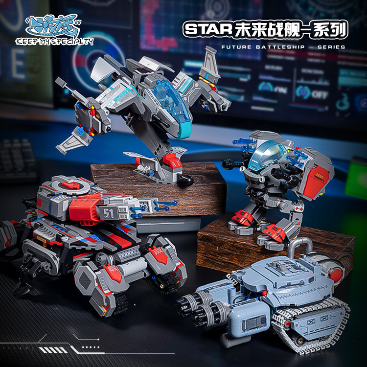 국경 간 작은 각도 미래 전함 4-in-1 스타 크래프트 전투기 탱크 조립 빌딩 블록 장난감 소년 선물스토어 가기
