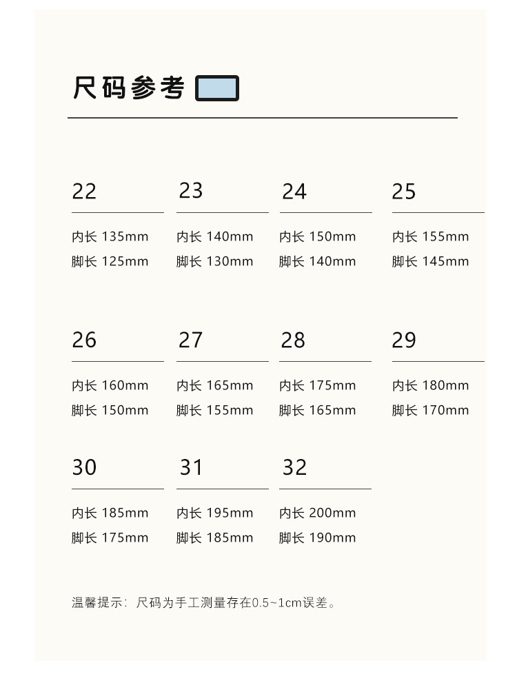 关于尺码,此款偏小。建议买家选大一个尺码,胖脚/脚背高的宝贝选大两个尺码!