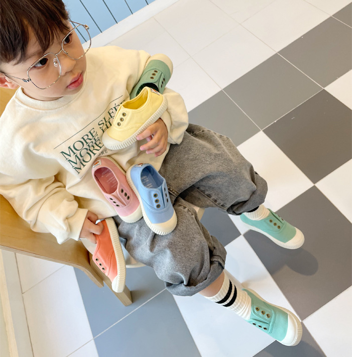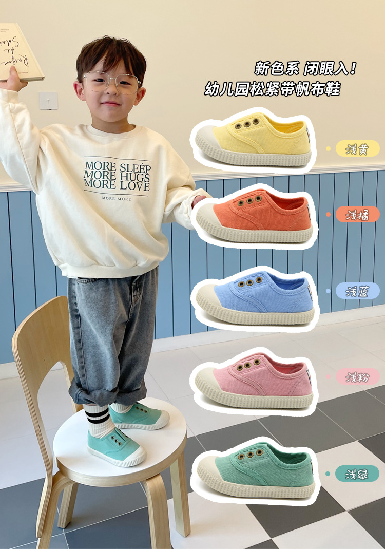 TS 아동화 유아용 캔버스화 로우탑 2025 봄 가을 남아 여아 유치원 실내화 봄 중소형 아동용스토어 가기