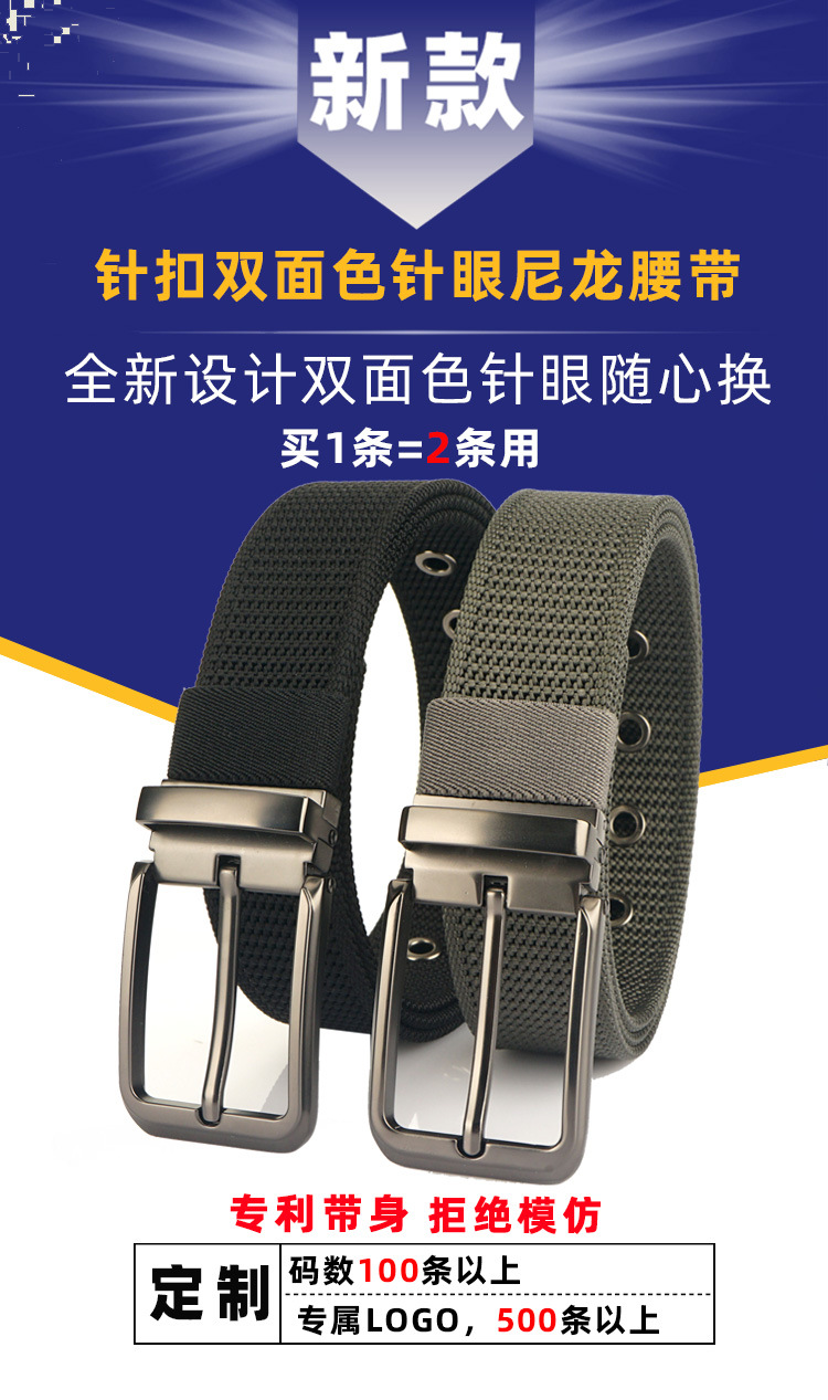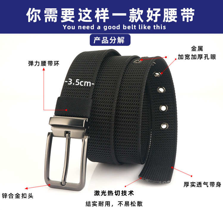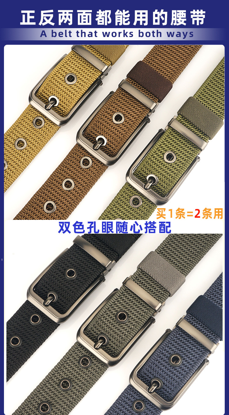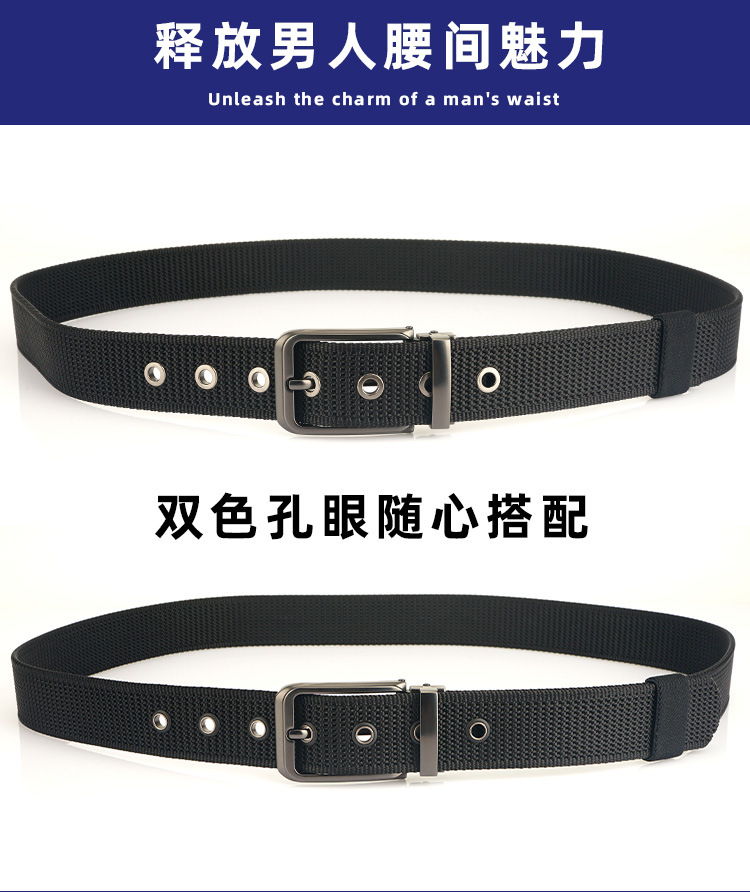 새로운 3.5 실버 핀 버클 캔버스 벨트 남성과 여성의 보편적 인 나일론 바지 벨트 간단한 캐주얼 두꺼운 구멍